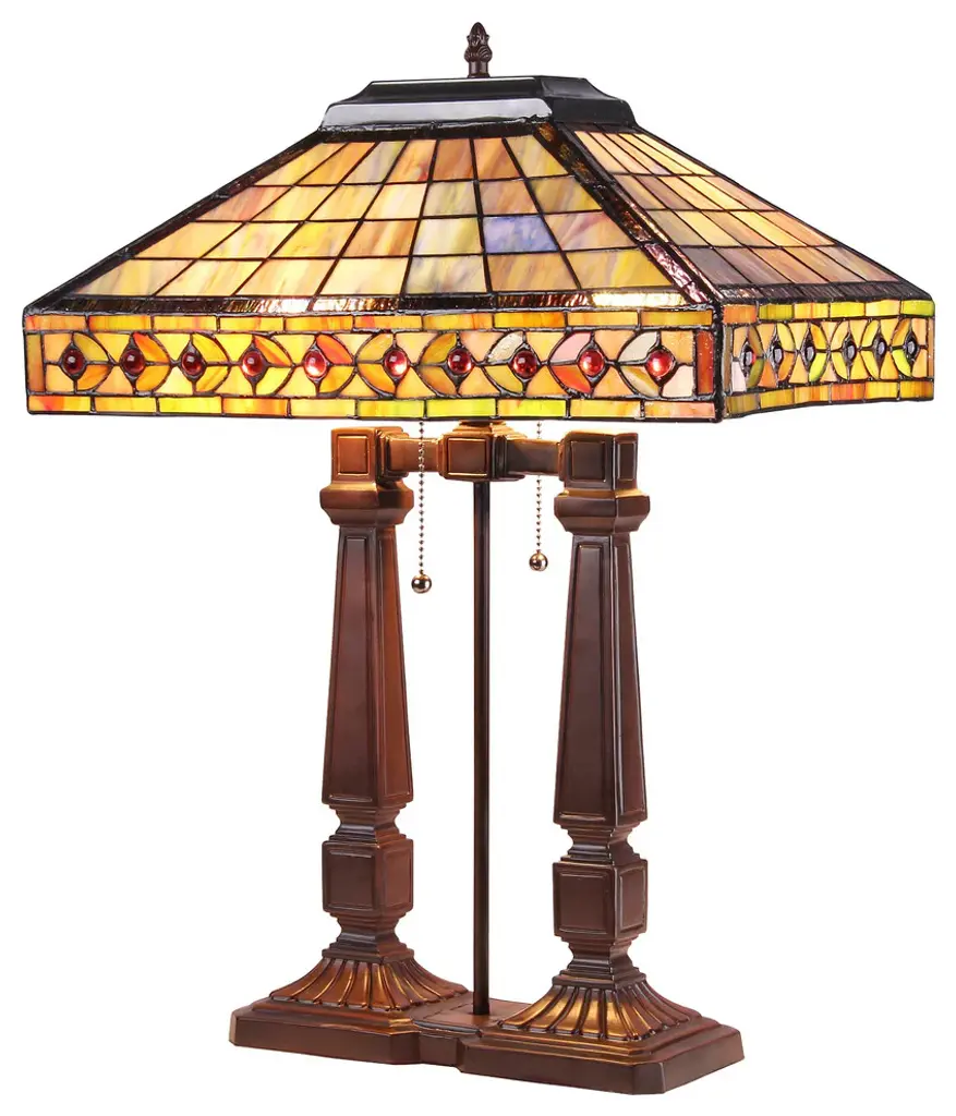 Sherwin, a beautifully-designed Mission Table Lamp shows impressive dignity. The lamp base is hand finished in a warm bronze. Use it as a bedside reading lamp. or dress up an office desk or end table.(2) 100 Watt max E26 Type A Bulb (not included) Pull chain356pcs glass cut, 32 beadsDownlightIndoor SettingFinish: Dark BronzeDisclaimer: Since these are hand crafted products, the exact color of glass pieces may vary. Colors of the glass will appear darker and less vibrant when not illuminated. Handmade glass will vary from one piece to the other; glass made at different times will also vary. Light bulbs used in lamps or ambient lighting may affect the appearance of the products. Stained glass product has been protected with mineral oil as part of the finishing process. Please use a soft dry cloth to remove any excess oil.