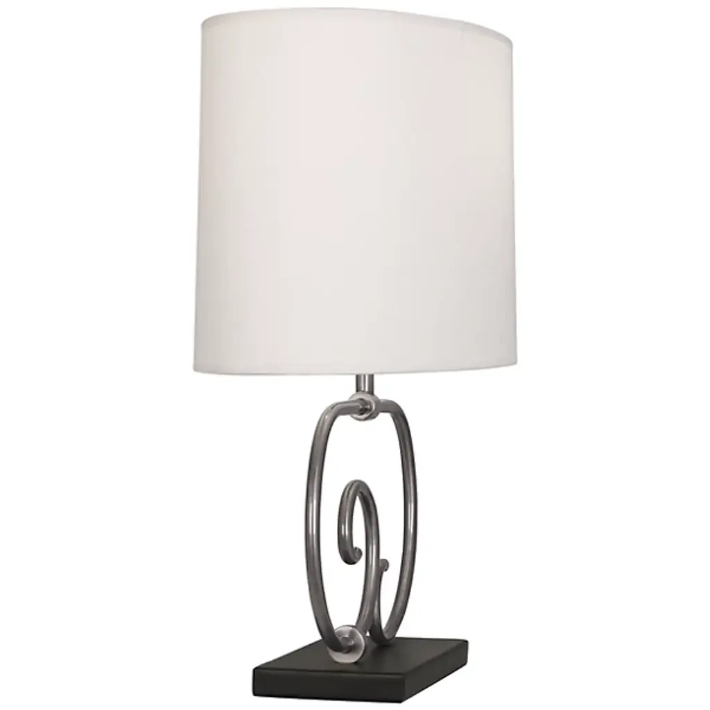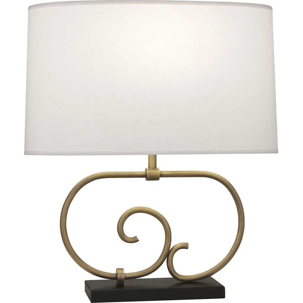 A heartfelt piece, whether on or off. One can’t help but love the curly features and spirited light of the Chloe Table Lamp from Robert Abbey. This chic modern design acts as a beautiful decoration when not in use. It gives off a sculptural appeal with a contoured framework that curves on the inside. This framework impresses with its airy, open feel. The fabric shade on top appears to delicately balance as a generous drum form. This shade sends out a relaxed, diffused glow that accentuates the bold silhouette of the sculpted metal below.