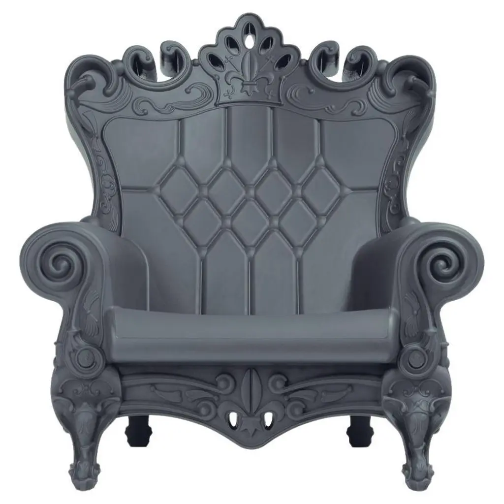 Chocolate Brown Queen Of Love Armchair by Moro, PigattiDimensions: D 98 x W 103,5 x H 112,5 cm. SH: 38 cm.Materials: Polyethylene.Available in different color and finish options. This product is suitable for indoor and outdoor use. Please contact us.Our stories happen in places precious to us. SLIDE was born from the desire to produce furniture and light to create the perfect atmosphere that highlights emotions.Design is inspiration, surprise, joy. It's the amazement of seeing something unique for the first time. It's creating spaces to feel good and live surrounded by beauty. It means giving a personal imprint to indoor and outdoor spaces. It means choosing your ideal element that is the perfect setting for emotions and experiences, which become indelible memories. The founder Giò Colonna Romano knows this well, combining his fervent imagination with thirty years of know-how in the processing of plastic resins, giving birth to SLIDE in 2002. The first note of amazement is the luminous furniture, which immediately became a must have in the world of events. Since 2015, his son Marco Colonna Romano has taken over the reins of the company, with the same desire to grow and innovate as his father. Thanks to a new panache and the team of young people it surrounds itself with, SLIDE becomes a beloved company for outdoor furniture: new shapes, materials and tactile textures have won the hearts and ideas of architects and interior designers around the world. SLIDE has thus created complete collections and furnishings, with new shapes, whose lines arise from collaboration with internationally renowned designers of the caliber of Alessandro Mendini, Paola Navone, Stefano Giovannoni, Fabio Novembre, Marcel Wanders, Karim Rashid, Marc Sadler, Francesco Favaretto and Marcantonio.New materials were chosen and inserted, initially soft and rigid polyurethane, and then comfortable cushions, waterproof fabrics, tactile textures ideal for completing the polyethylene furnishings with taste and class. But SLIDE does not forget its first essence, lighting: in recent years it has developed a line of much more technical lamps for large areas, essential in shape but with great visual impact. For the first time, Slide has managed to give an artisanal twist to an industrial process: to meet the increasingly high demands of living, the production creates non-replicable shades, in which every small imperfection enhances the industrial process and makes each piece unique . Because Slide's strength has always been the careful reading of the market, the creation of something that didn't exist and which then became necessary: here Slide continues its production in Buccinasco, on the outskirts of Milan, but its name and its products reach more than 130 countries around the world.