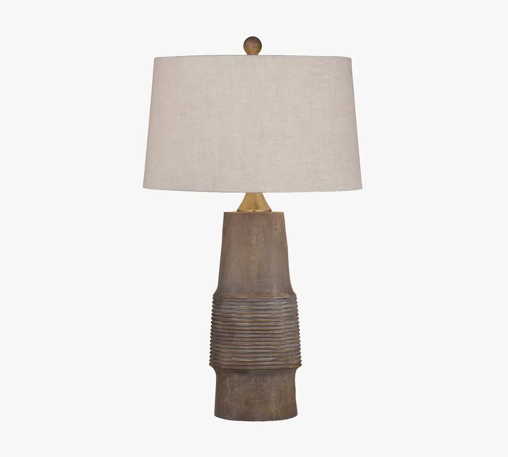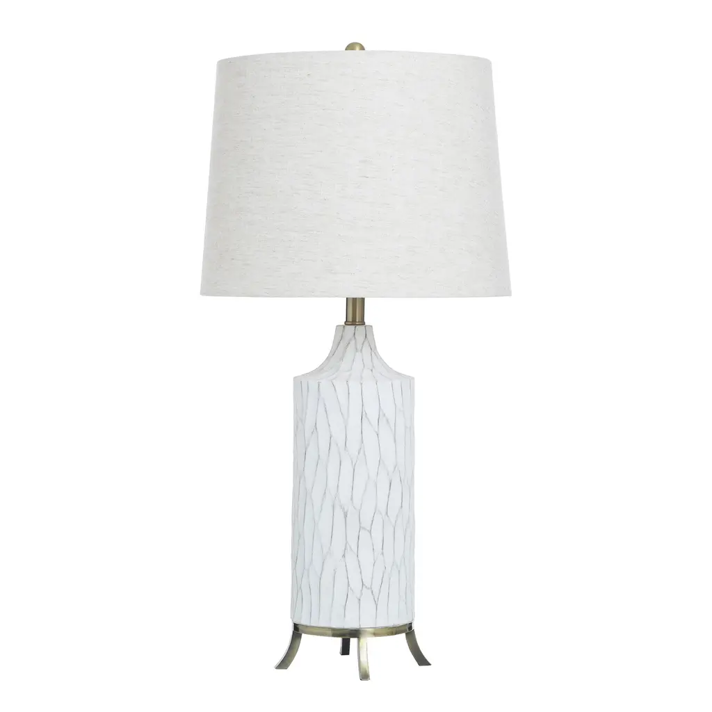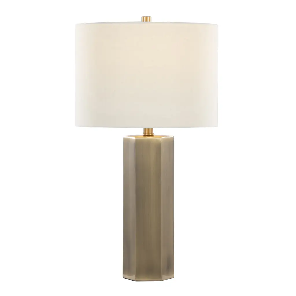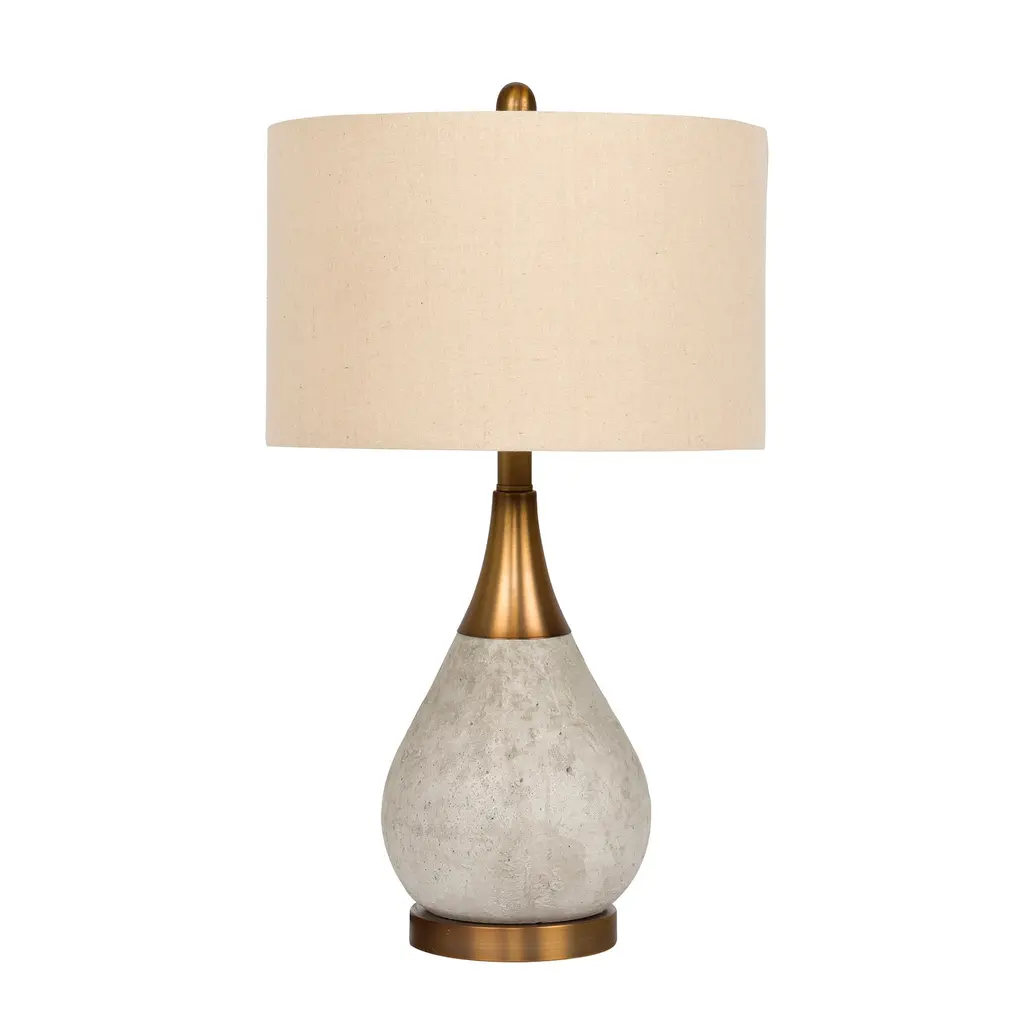 The slightly tapered, modern body of this unique table lamp is designed to reflect light throughout, making it a dynamic addition to any space. The base is crafted of cement with an alabaster finish, and topped with a slightly patinaed gold accent for an extra touch of glamor.