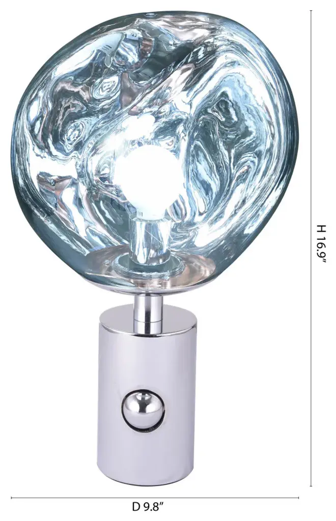 This Molten Glass Table Lamp is a stunning and unique piece that will add a touch of drama and elegance to your space. Its sculptural design features a hand-blown glass shade that resembles molten lava, creating a mesmerizing visual effect. The silver finish adds a touch of luxury, making it perfect for bedside tables, living room end tables, or home office desks.Number of bulbs: 1Type of bulb: E26 Wattage: 60W Bulbs included: No UL listed: Yes