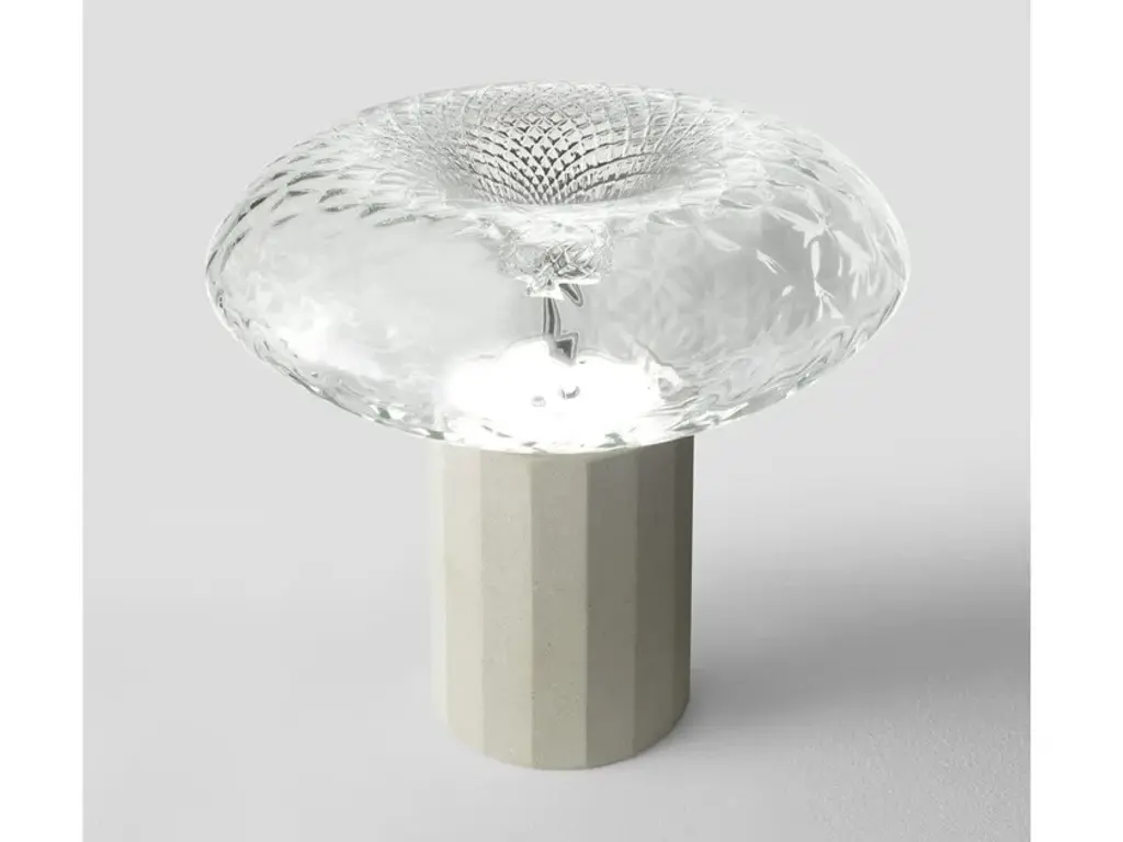 The Cicla collection is enriched with a new table lamp with a blown glass diffuser and base made of Vicenza stone: a rock with warm colors and fossil sediments that make its surface textural, grainy and faceted.Module LED: 21wLumen: 2500CRI: >80Color Temperature: 3000KIP20MATERIALSDiffuser GLASSBody MARBLEStructure METALFINISHESDiffuser TRANSPARENTBody VICENZA STONEStructure C ChromeCicla collecion offers an elegant look that will impress with its circular blown glass diffuser that is accented by the details in iron grey or chrome metal finish.It is made with the highest quality materials, showcasing the elegance and beauty of each element in all its versions: suspension, ceiling and table lamp in smoked, white or transparent glass.