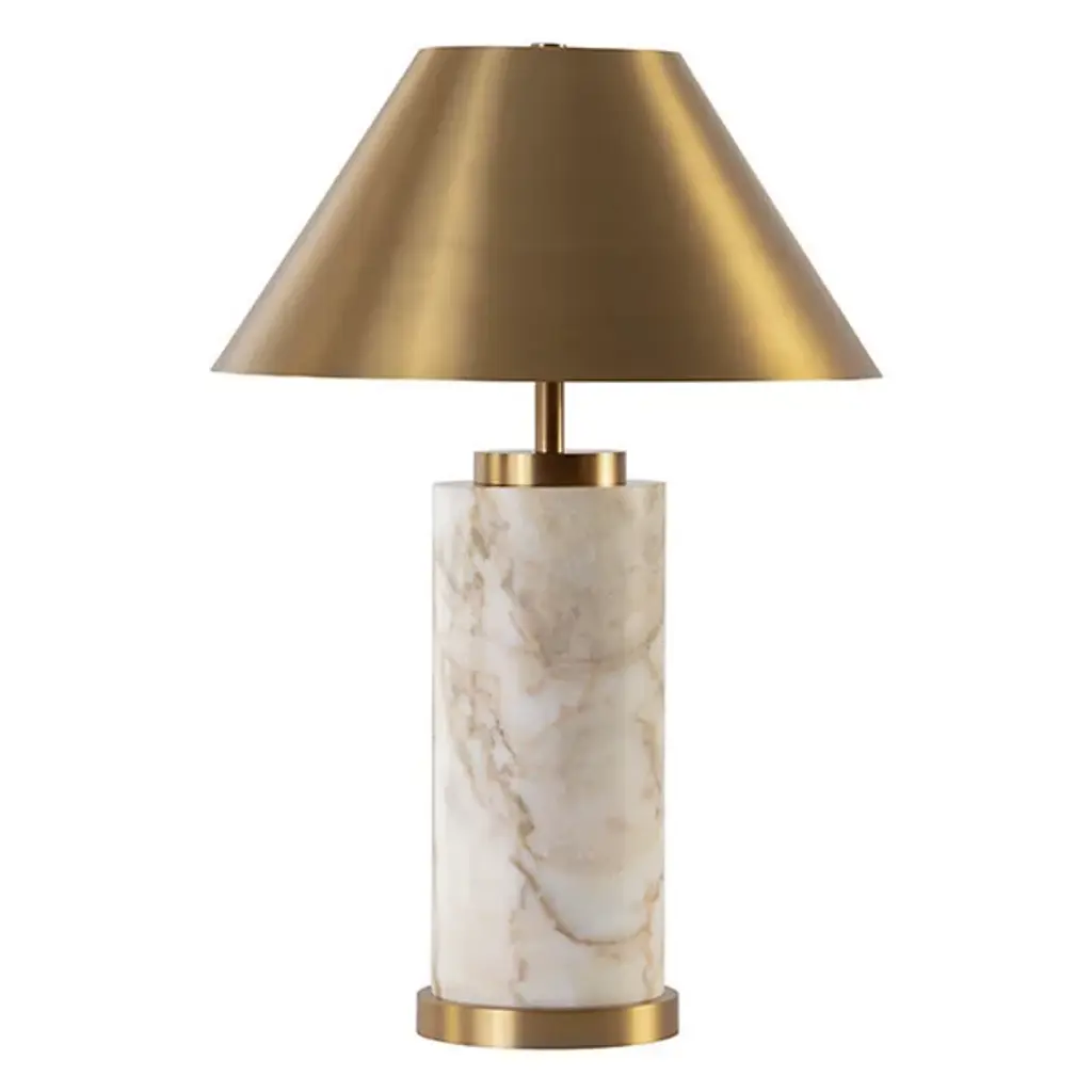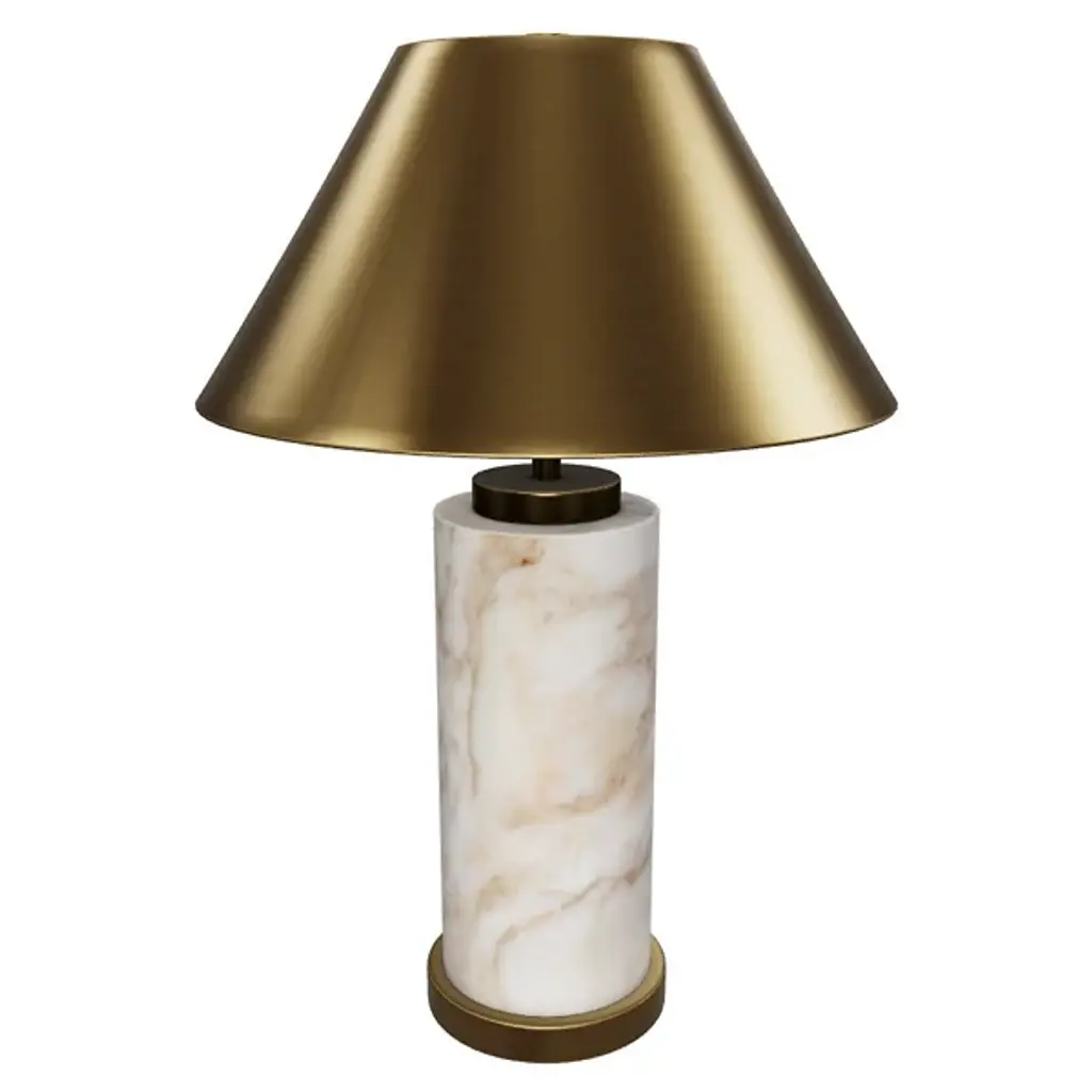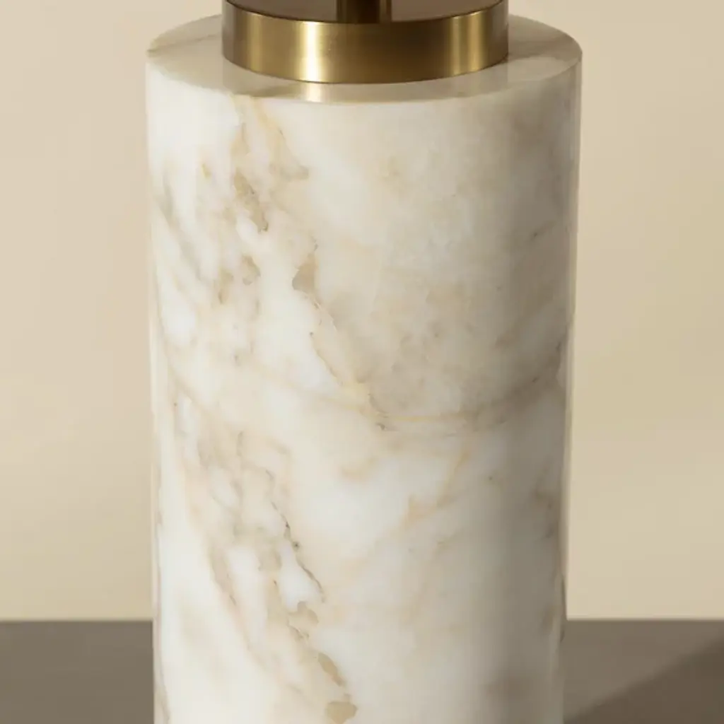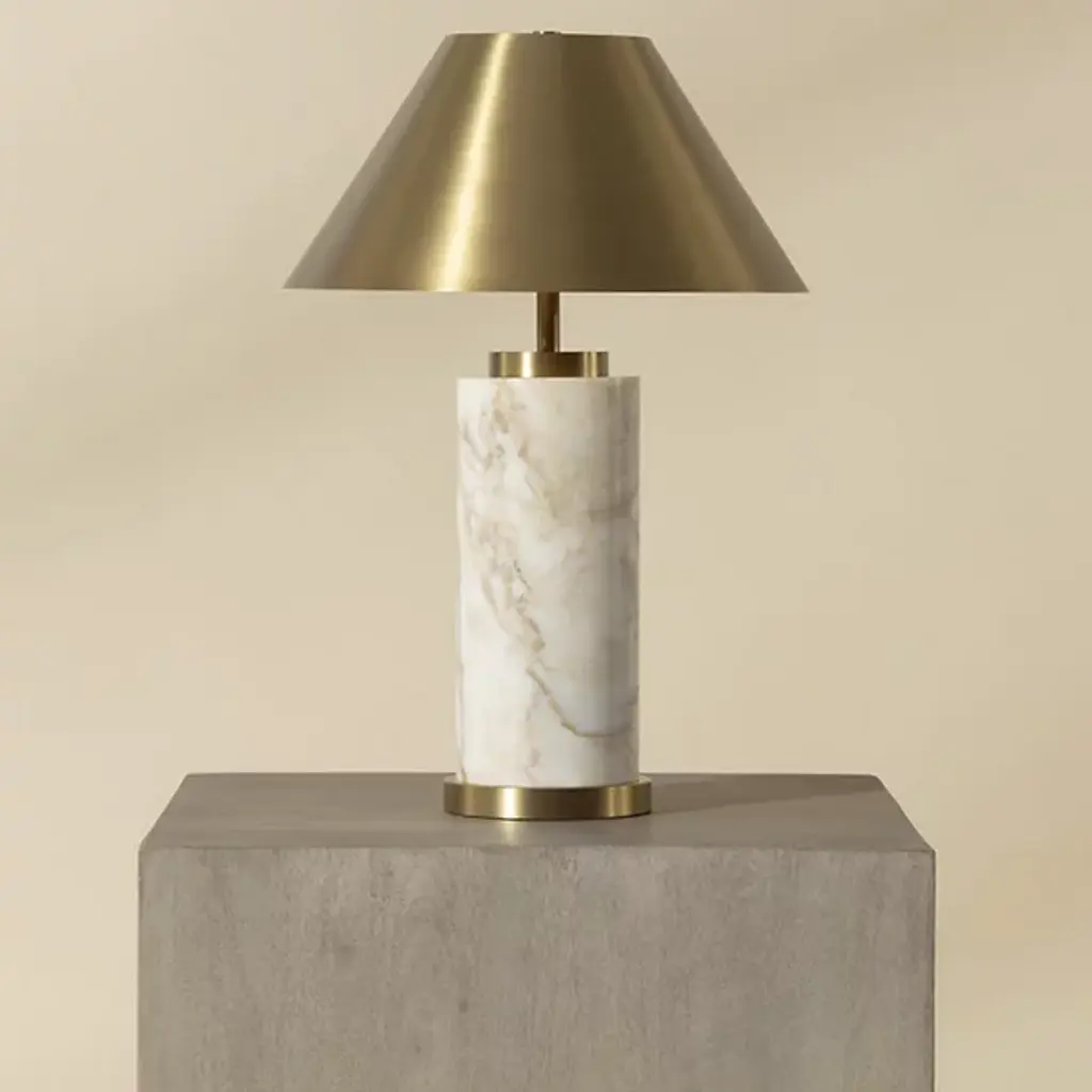 The Cilla Table Lamp from Sunpan demonstrates how opposing materials can find a perfect balance. Its cylindrical Italian marble base anchors the design with substantial weight and one-of-a-kind patterning – no two pieces share identical veining or color distribution. Where many designs would stop, this lamp continues upward with a tapered metallic shade in brushed gold that directs light both downward and outward. Its plug-in design treats lighting as both a function and art object, making it suitable for home offices, bedside tables, and living rooms.
