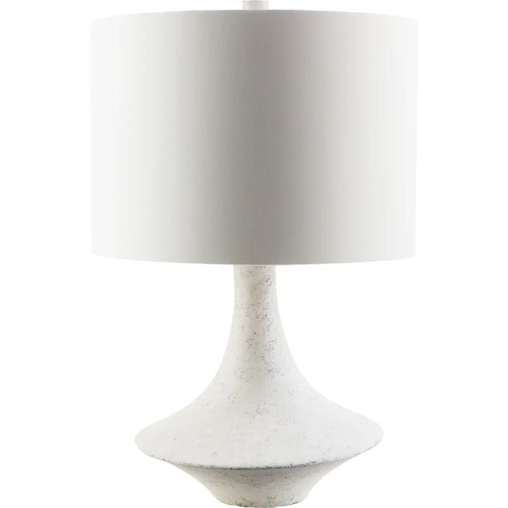 A cone shaped speckled terrazzo base makes this table lamp stand out. The antique brushed brass iron structure is topped with an off-white cotton shade. The three-way switch allows you to control the ambiance in the room. Number of Bulbs: 1 Bulbs Included: No Bulb Wattage: 100 Bulb Type: Incandescent