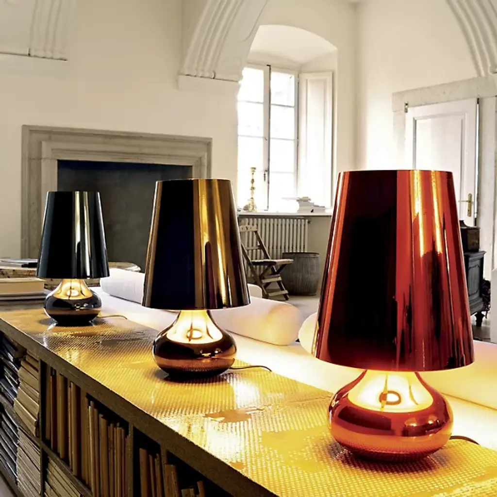 This disco-era table lamp never looked so good. The Kartell Cindy Table Lamp features a classic 1970s shape that's been rethought, retooled and redefined. The sweet little metallic Cindy Table Lamp radiates with iridescent reflections...and it's energy efficient, too.