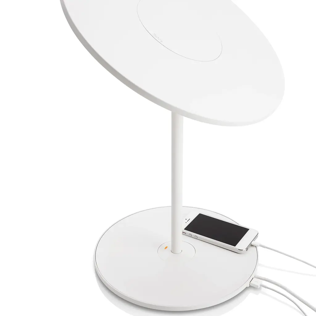 With a cutting-edge LED disc, the Circa Table Lamp from Pablo blurs the boundaries between existing notions of ambient table lamps and focused task lighting. Technology doesn't get better than this flat-panel light source that moves fluidly to rotate 360 degrees and tilt as needed. With 3 levels of warm and even illumination, effortlessly controlled with a base-located touch dimmer. In a nod to modern lifestyles, Circa also integrates a USB charging port for those mobile devices that are always close at hand.