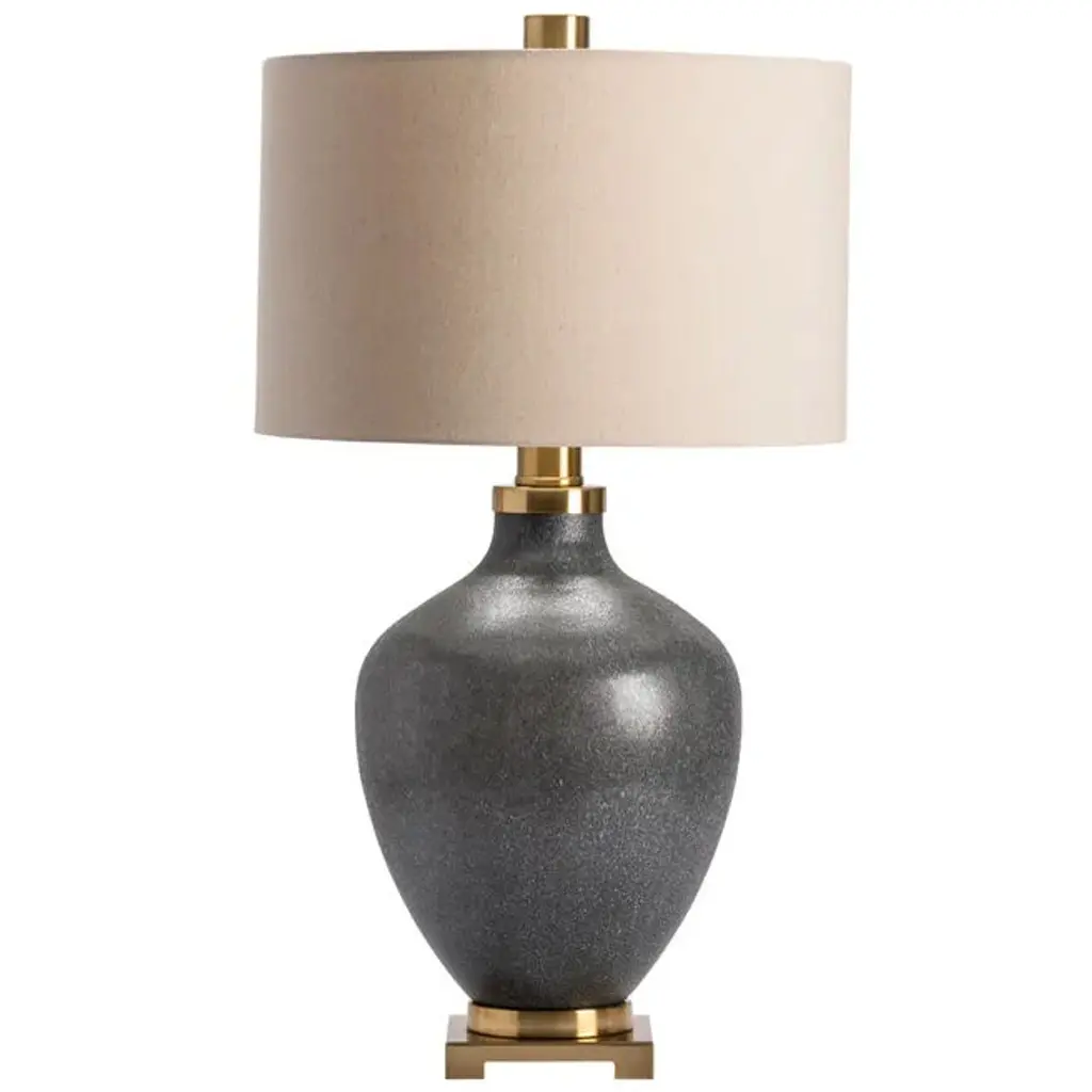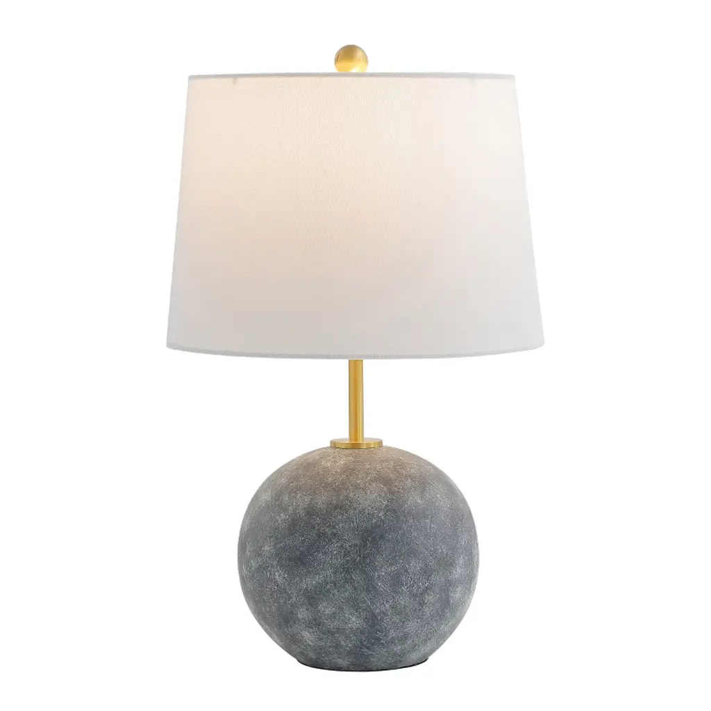 Introducing our sophisticated CLA Table Lamp, an embodiment of modern styling meets traditional craftsmanship. The lamp showcases a sturdy cement body with a captivating grey washed finish, providing a unique textured look that is both aesthetically pleasing and practical for any interior space. Anchoring the design, the brass accents deliver a subtle, elegant contrast that enriches the lamp's overall appeal. This lamp features a fabric shade in a clean, crisp white color, which ensures that it projects a warm and inviting light, perfect for creating a cozy atmosphere in any room. The shade measures 12 inches in width, offering ample light diffusion for tasks such as reading, working, or simply relaxing. With dimensions thoughtfully designed to cater to various table sizes, the lamp stands at a height of 23.5 inches, with the base diameter at 5 inches, ensuring stability and balance. The 60-inch cord length provides flexible placement options without the need for immediate proximity to an outlet. Elevate your decor with this CLA Table Lamp, an accessory that serves not only as a source of light but also as a statement piece that complements any contemporary or classic setting.