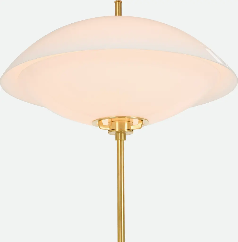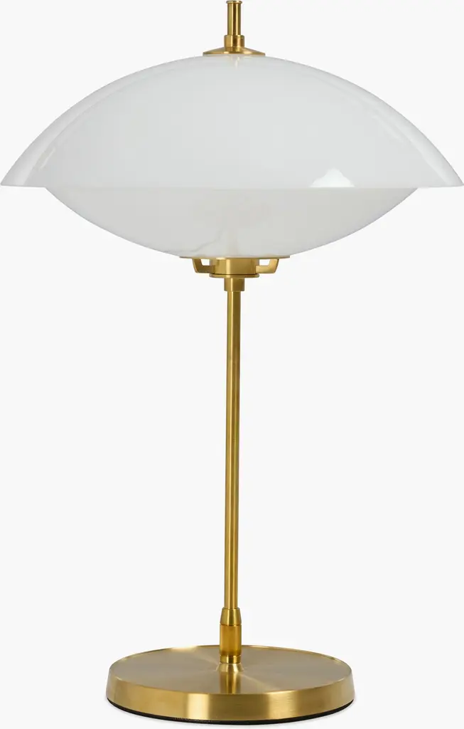 A luminescent pearl of light gleams through mouth-blown opal glass in Danish studio Ahm & Lund's stunning Clam Table Lamp (2024). Designed to echo the curved forms of seashells that reveal something precious within, the soft, evocative glow emits an atmospheric ambiance while exquisite brass detailing adds a timeless expression. Each piece is mouth-blown and unique, which may result in variations across surface and texture. Its distinctive brass suspension canopy is designed to patina over time. Bulb (not included): LED E12 40W MAX. UL Listed. Exclusively at DWR. Made in Poland.