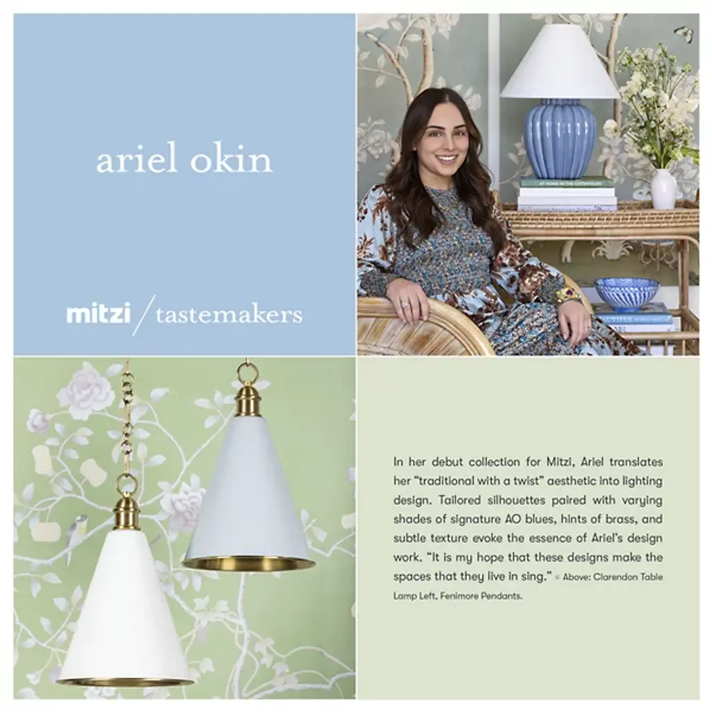 Mitzi's Clarendon Table Lamp's design showcases a timeless aesthetic that feels refreshingly contemporary. The beautiful blue hue gracefully gathers within the cracks and ribbing, lending dimension and a stunning textured effect. With its versatile appeal, this lamp effortlessly enhances any tabletop, counter, or nightstand, instantly adding style and a distinct pop of color to the space. Created by the visionary designer Ariel Okin, this piece showcases a harmonious blend of timeless elegance and contemporary flair