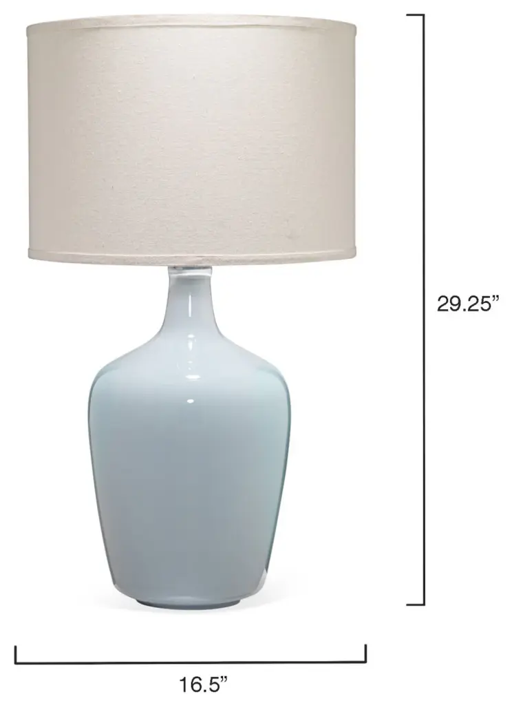A classicplum jar''shape gives thistable lamp easy, versatile style that matches nearly any style of decor.Available in several sizes and colors.• 29.25"H x 16.5" dia. Weighs 6 lbs.• Hand Finished Blown Glass with Linen Shade• UL Listed. Uses 1 max 150W standard Type A bulb (not included). 3 way socket. 96 inch cord.• Heirloom Quality - Expertly hand crafted and hand finished. Due to the hand crafted nature of this piece, each piece may have subtle differences.