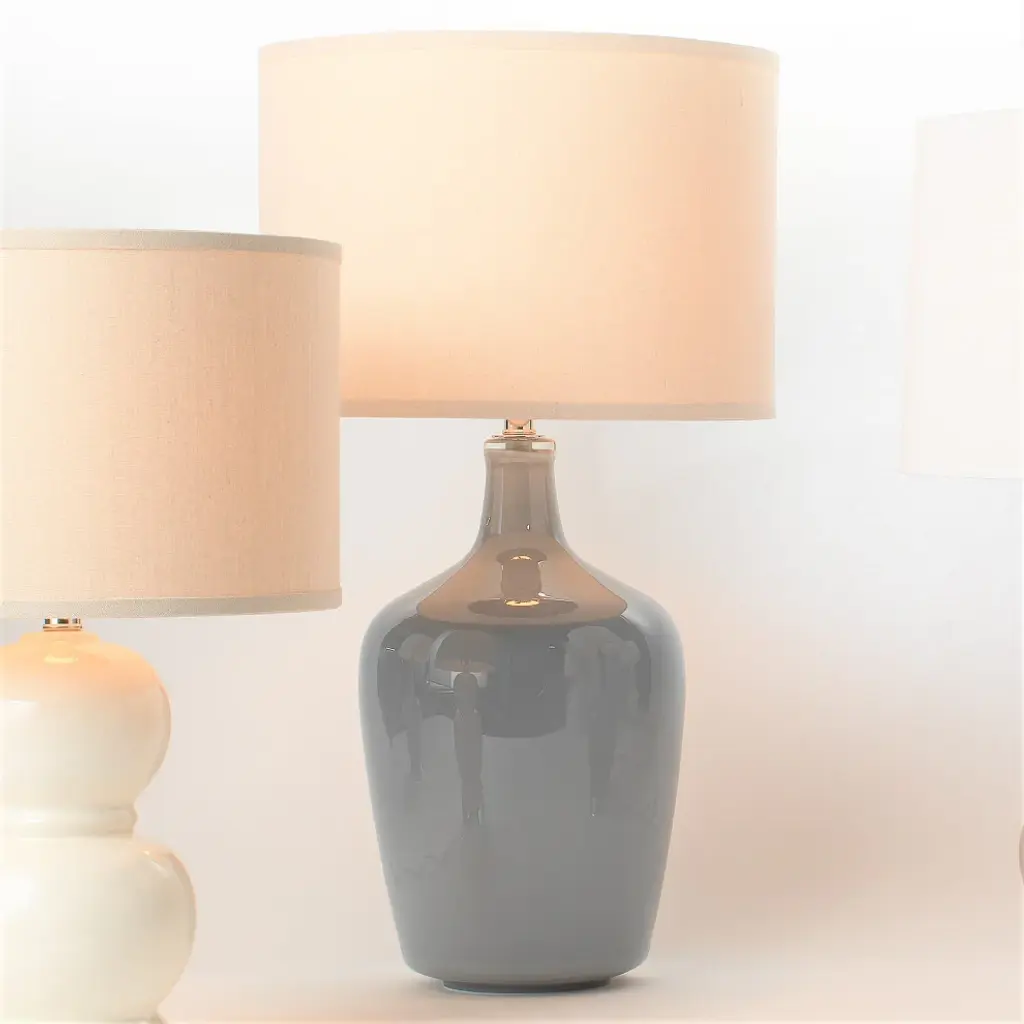 Classic Contemporary Jar Shape Table Lamp Dove Grey Glass Bottle 30" Light