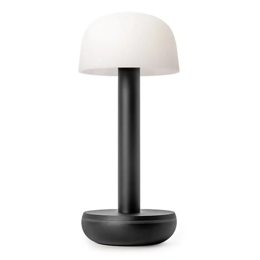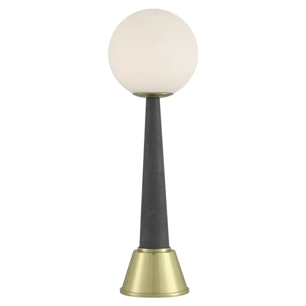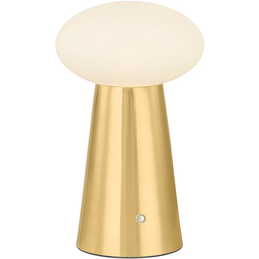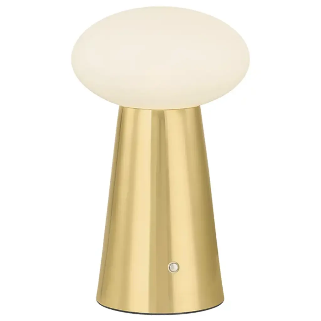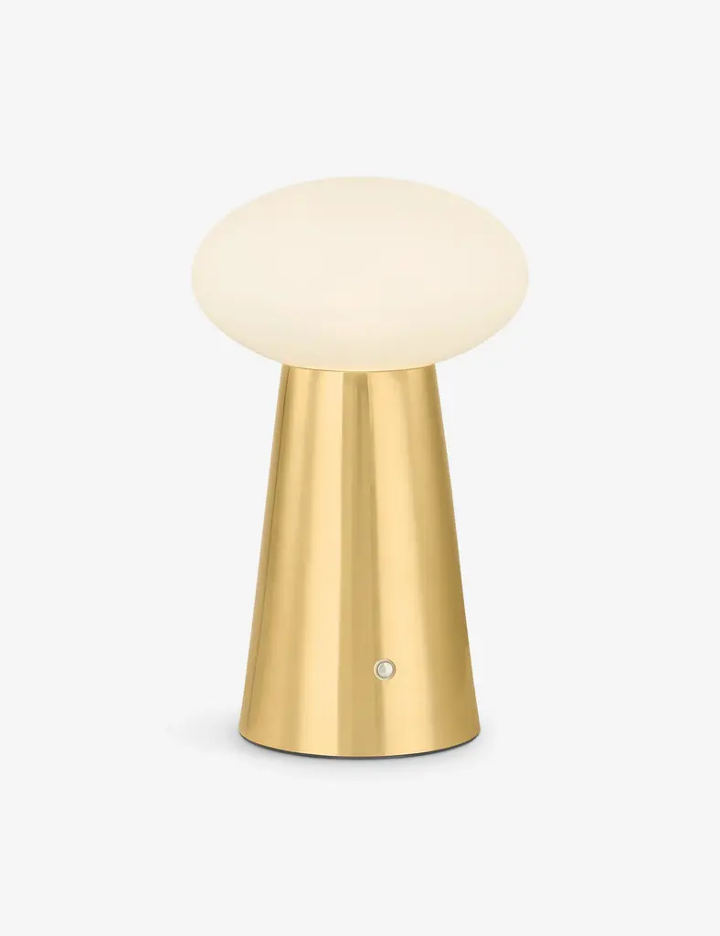 The Clavel lamp makes a bold statement with a small silhouette. The conical antique brass base and cloud glass shade bring warmth and a hint of play, creating a sculptural accent you can move from nightstand to bookshelf. This cordless table lamp recharges easily for a chic touch of light wherever you need it.