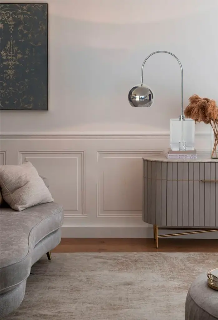 This modern and stylish table lamp features a sleek polished nickel metal frame with a curved arm and a spherical shade. The minimalist design creates a dramatic and eye-catching effect, perfect for adding a touch of contemporary flair to a living room, office, dining room or bedroom.Color: Polished Nickel Size: L17.5" W7" H26.5"Materials: Crystal & MetalLighting Specs:Commercial Use: YesUL Certified: YesETL Certification: NoLight bulbs not includedNumber of Bulbs: 1Bulb Type: E26Max Wattage: 60