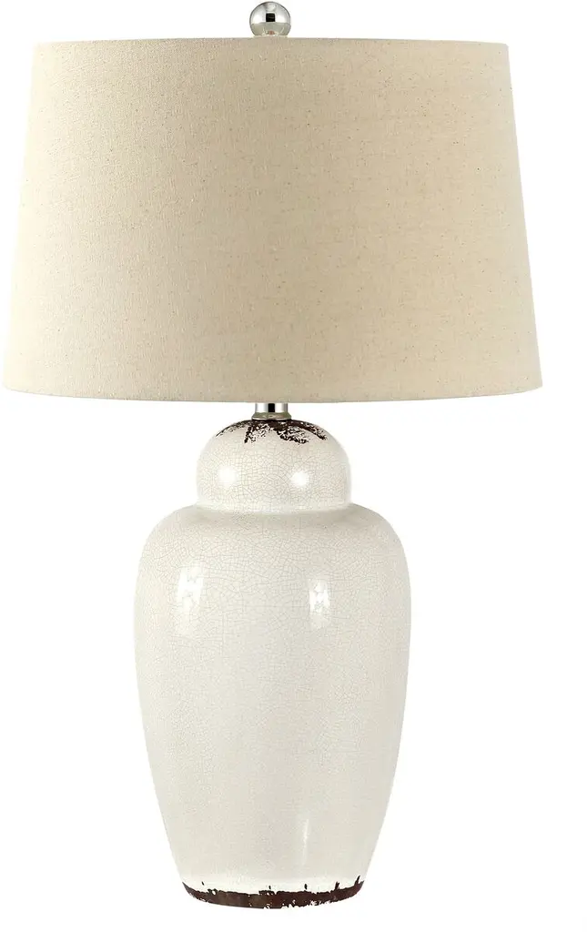 The silver-leaf accents on this table lamp really pop against its glossy taupe ceramic body and natural sea grass shade.