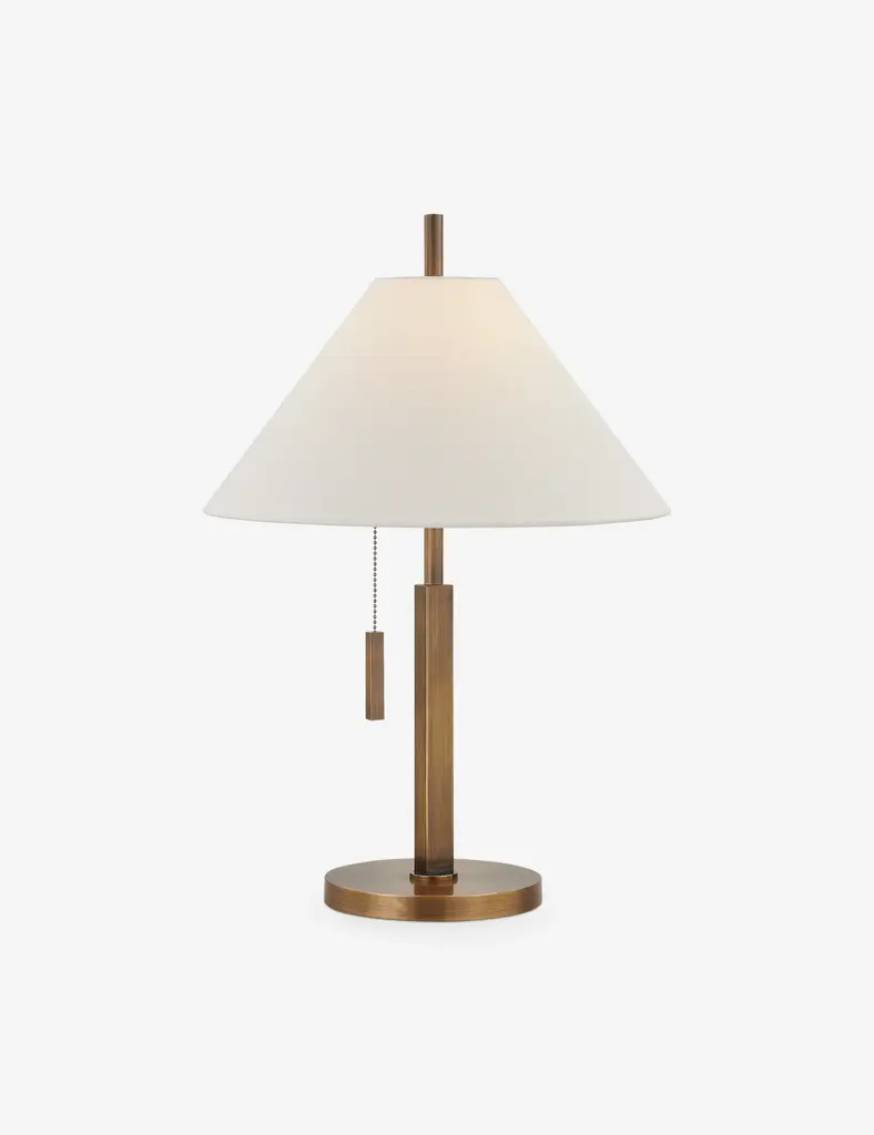 Colin King has emerged as a definitive voice in modern American design with a signature aesthetic that stems from a focus on visual storytelling. An antique brass finish highlights the clean, tailored lines of the Clic lamp, bringing a deco edge to the design. The matching pull chain adds a chic touch, fashioning the perfect table for a timeless entryway or study.