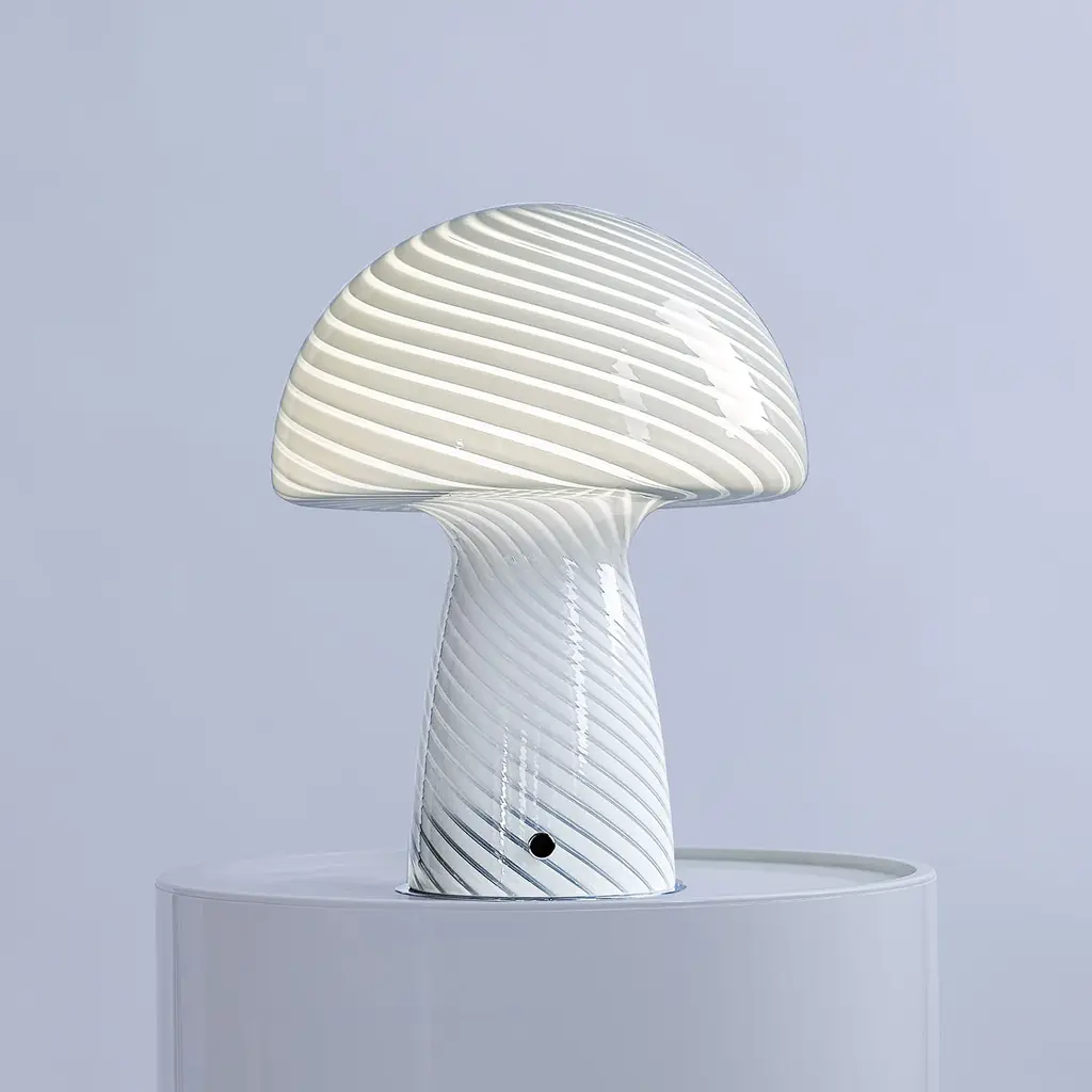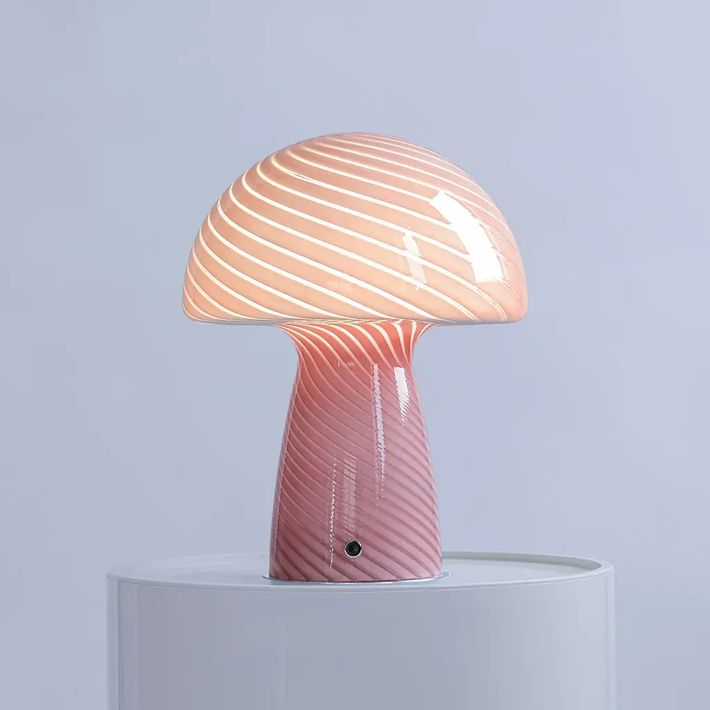 Inspired by vintage mid-century modern Murano lamps, the Close Top Mushroom Lamp brings a playful yet sophisticated touch to any room. This mushroom lamp features a hand-blown glass design with a swirling pattern, radiating a comforting warm glow that complements both colorful décor and chic, modern aesthetics. Perfect for adding personality to your space, this pink mushroom lamp (also available in white and green) is a must-have for the mycologist or fungi-obsessed enthusiast in your life. Whether placed on a side table, bookshelf, or desk, its unique mushroom shape and vibrant color choices make it a standout piece. Designed for both style and functionality, the lamp comes with a 52" white wire, allowing easy placement in any area. The E27 bulb is not included, giving you the freedom to choose your preferred lighting. With its vintage charm and contemporary appeal, this mushroom table lamp adds a touch of whimsy and warmth to your home.