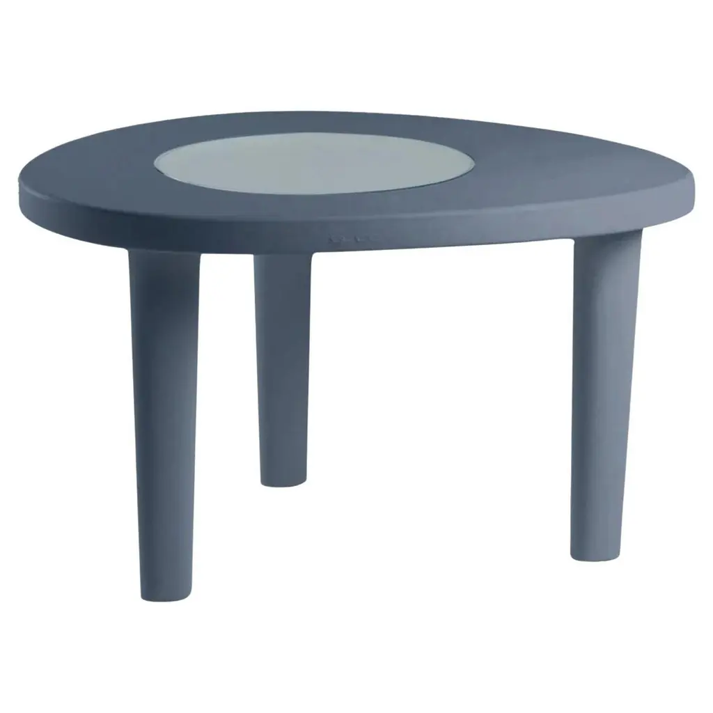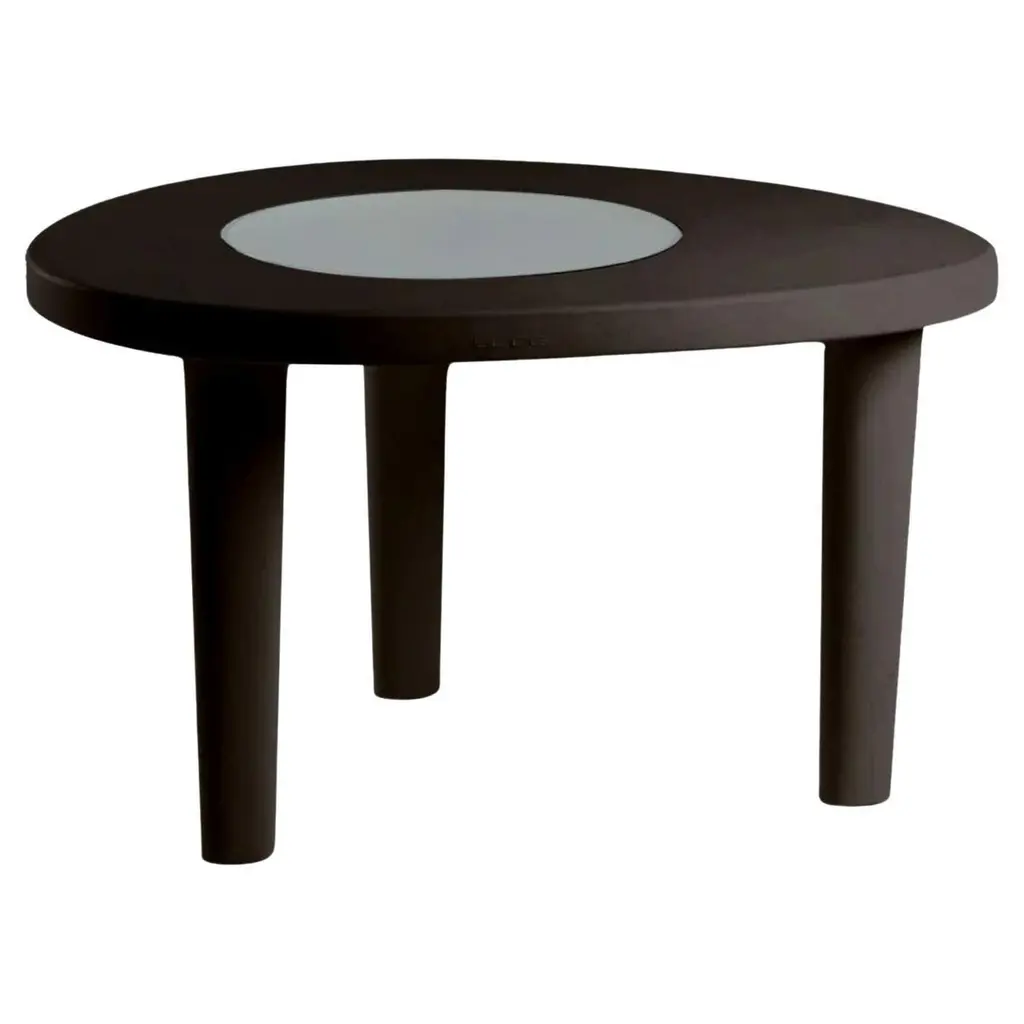 Coccodé Jet Black Table by Giò Colonna RomanoDimensions: D 100 x W 120 x H 72 cm.Materials: Polyethylene and tempered/satinated glass.Weight: 20 kg.Available in different color options. Prices may vary. This product is suitable for indoor and outdoor use. Available in standard, lacquered, and lighted versions. Please contact us.Our stories happen in places precious to us. SLIDE was born from the desire to produce furniture and light to create the perfect atmosphere that highlights emotions.Design is inspiration, surprise, joy. It's the amazement of seeing something unique for the first time. It's creating spaces to feel good and live surrounded by beauty. It means giving a personal imprint to indoor and outdoor spaces. It means choosing your ideal element that is the perfect setting for emotions and experiences, which become indelible memories. The founder Giò Colonna Romano knows this well, combining his fervent imagination with thirty years of know-how in the processing of plastic resins, giving birth to SLIDE in 2002. The first note of amazement is the luminous furniture, which immediately became a must have in the world of events. Since 2015, his son Marco Colonna Romano has taken over the reins of the company, with the same desire to grow and innovate as his father. Thanks to a new panache and the team of young people it surrounds itself with, SLIDE becomes a beloved company for outdoor furniture: new shapes, materials and tactile textures have won the hearts and ideas of architects and interior designers around the world. SLIDE has thus created complete collections and furnishings, with new shapes, whose lines arise from collaboration with internationally renowned designers of the caliber of Alessandro Mendini, Paola Navone, Stefano Giovannoni, Fabio Novembre, Marcel Wanders, Karim Rashid, Marc Sadler, Francesco Favaretto and Marcantonio.New materials were chosen and inserted, initially soft and rigid polyurethane, and then comfortable cushions, waterproof fabrics, tactile textures ideal for completing the polyethylene furnishings with taste and class. But SLIDE does not forget its first essence, lighting: in recent years it has developed a line of much more technical lamps for large areas, essential in shape but with great visual impact. For the first time, Slide has managed to give an artisanal twist to an industrial process: to meet the increasingly high demands of living, the production creates non-replicable shades, in which every small imperfection enhances the industrial process and makes each piece unique . Because Slide's strength has always been the careful reading of the market, the creation of something that didn't exist and which then became necessary: here Slide continues its production in Buccinasco, on the outskirts of Milan, but its name and its products reach more than 130 countries around the world.