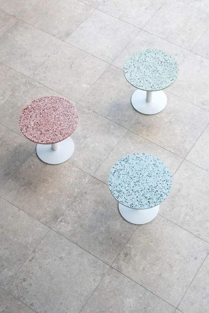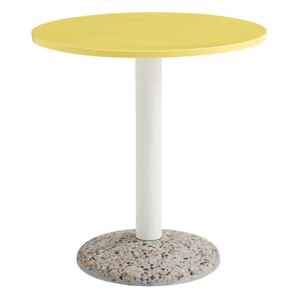 'I' is a collection of tables: coffee / side tables, dining tables, bar tables. The base and the structures are in steel, and the tabletop is in terrazzo.by Bentu designMany models available:Square dining table - Terrazzo black / white Round dining table - Large / small top / Terrazzo black / white Coffee table - Terrazzo white / black / blue / green / redBare table - Terrazzo white / black Bentu design's furniture derives its uniqueness from the simplicity of its forms and its materials. Designed and manufactured by the designers of Studio Bentu themselves, these lamps, coffee tables, cup-boards and seats all have in common the use of concrete. This material that is usually reserved for construction use, finds here a certain nobility. The patterns that are created by the grains of this material once it flowed and unmolded is what gives the creations of Studio Bentu their originality. Accompanied at times finishing’s that are more valuable like marble or polished brass, making concrete a more suitable material for furniture.