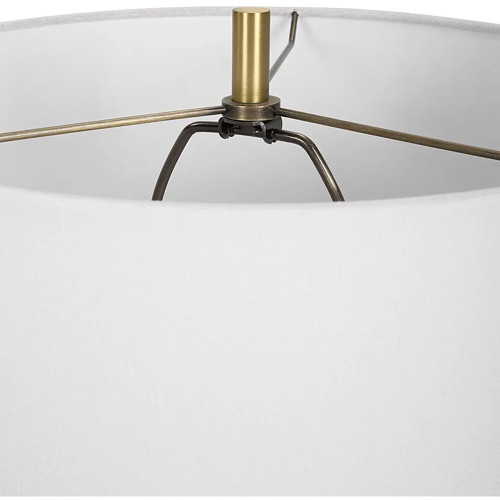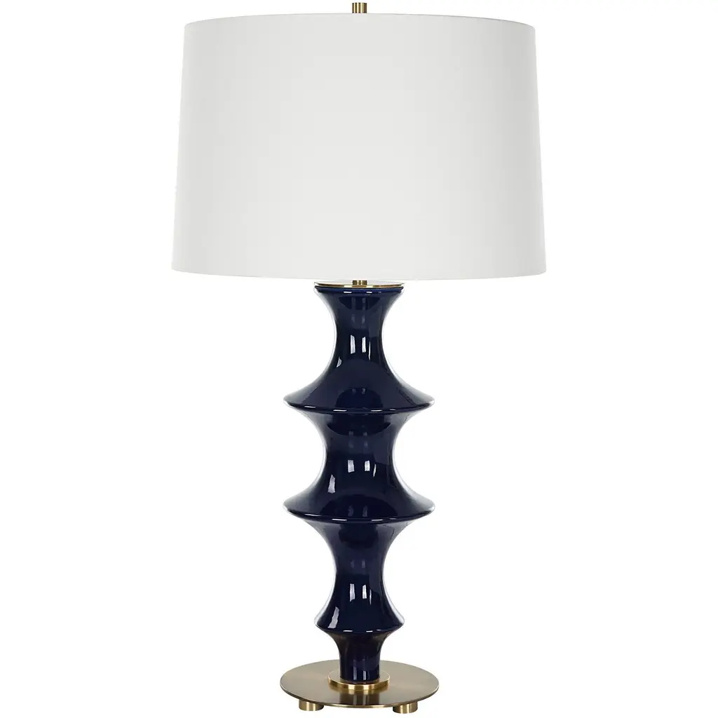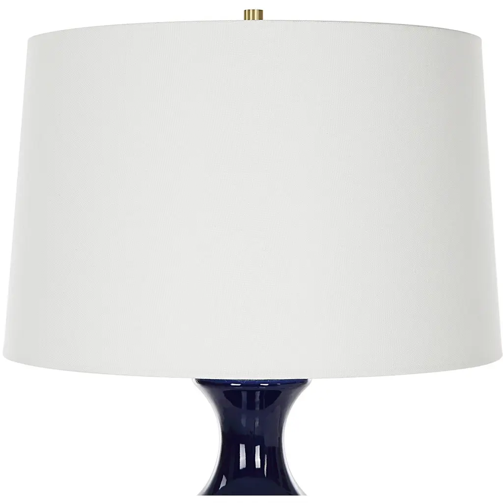 A Contemporary Tribute To Classic Chinoiserie, This Table Lamp's Fluted Base Is Formed From Sculpted Ceramic In A Rich Cobalt Gloss Glaze, Accented By Antique Brass Plated Hardware. The Slightly Tapered Drum Shade Is Covered In A Classic White Linen Fabric.