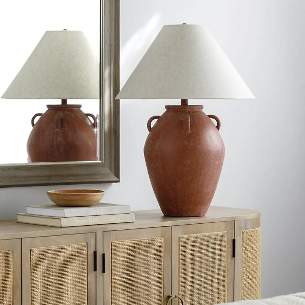 The Colorado Table Lamp from Surya balances earthy elements with refined materials. Its resin body provides substantial durability while the linen shade softens the light output. The metal lining inside the shade helps direct illumination downward exactly where you need it for reading or other detail work. You'll particularly appreciate the 3-way socket switch that lets you adjust brightness levels. The lamp’s plastic finial adds a subtle finishing touch without competing with its primary forms. This accent piece finds its purpose on desks, nightstands, or side tables where adjustable task lighting matters most.