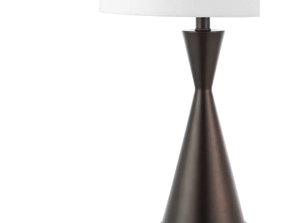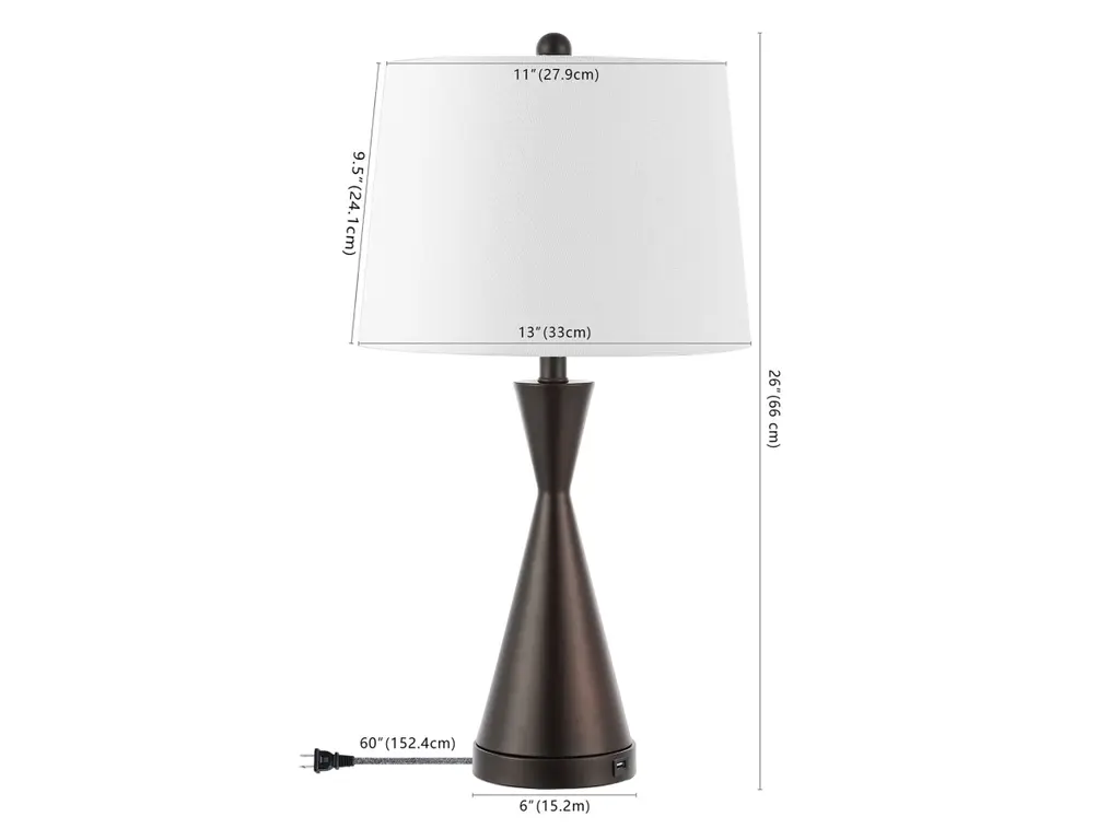 A retro metal silhouette and classic drum shade give this pair of lamps a clean, midcentury look. Perfect for resort or office interiors, these lamps include energy-saving LED bulbs for bright, warm light. A pair of these can add understated style to a bedroom, living room or entry console.