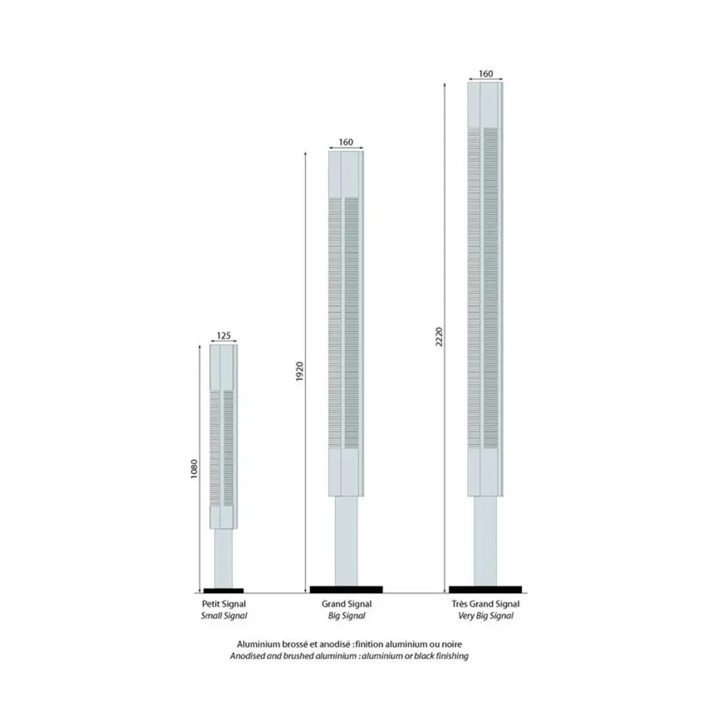 Column lamp signal small by Serge MouilleDimensions: D 16 x H 108 cmMaterials: AluminumOne of a King. Numbered.Also available in different color and dimensions.All our lamps can be wired according to each country. If sold to the USA it will be wired for the USA for instance.Luminaire with an iconic design, the Signal Serge Mouille light column is the reissue of a timeless one from 1962. Fixed on a square base and available in three different sizes, it consists of a brushed and anodized aluminum body with a black or aluminum finish. . Made in France by Éditions Serge Mouille, this numbered model is delivered quickly, accompanied by its certificate of authenticity. It is also available in white.Serge MouilleBorn in Paris in 1922, Serge Mouille is today considered one of the greatest lighting designers in the world. He developed a talent for drawing and creation very early on and was the youngest student of his time to be admitted to the School of Applied Arts at the age of 13.Master goldsmith, Serge Mouille learned the art of modeling metal with a hammer thanks to his mentor Gabriel Lacroix and worked for several goldsmith houses in Paris. It was his meeting with Jacques Adnet, director of the Compagnie des arts français, that would mark a turning point in his career.In 1951, Jacques Adnet commissioned Serge Mouille to create a “large light fixture” for his South American customers: the first three-arm floor lamp was born. This innovative luminaire in molded black steel with organic shapes will influence his famous series of "Black Forms" and will forever mark the history of design. Serge Mouille then passes from the status of master craftsman to that of creative artist.At the beginning of the 1960s, Serge Mouille decided to radically distance himself from everything he had created until then by developing a series of light columns with fluorescent tubes. In 1963, he stopped producing lights to devote himself to teaching.Suffering from tuberculosis, Serge Mouille died in 1988 and his widow, Gin Mouille, decided to continue to bring his art to life by publishing under license his most emblematic creations. Each copy is made in France by Éditions Serge Mouille and has an engraved serial number, accompanied by a certificate of authenticity.