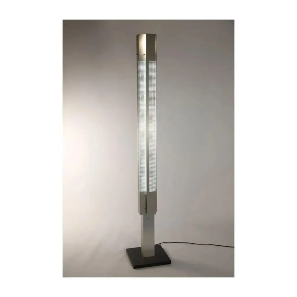 Column lamp signal small by Serge MouilleDimensions: D16 x H222 cmMaterials: AluminumOne of a King. Numbered.Also available in different color and dimensions.All our lamps can be wired according to each country. If sold to the USA it will be wired for the USA for instance.Luminaire with an iconic design, the Signal Serge Mouille light column is the reissue of a timeless one from 1962. Fixed on a square base and available in three different sizes, it consists of a brushed and anodized aluminum body with a black or aluminum finish. . Made in France by Éditions Serge Mouille, this numbered model is delivered quickly, accompanied by its certificate of authenticity. It is also available in white.Serge MouilleBorn in Paris in 1922, Serge Mouille is today considered one of the greatest lighting designers in the world. He developed a talent for drawing and creation very early on and was the youngest student of his time to be admitted to the School of Applied Arts at the age of 13.Master goldsmith, Serge Mouille learned the art of modeling metal with a hammer thanks to his mentor Gabriel Lacroix and worked for several goldsmith houses in Paris. It was his meeting with Jacques Adnet, director of the Compagnie des arts français, that would mark a turning point in his career.In 1951, Jacques Adnet commissioned Serge Mouille to create a “large light fixture” for his South American customers: the first three-arm floor lamp was born. This innovative luminaire in molded black steel with organic shapes will influence his famous series of "Black Forms" and will forever mark the history of design. Serge Mouille then passes from the status of master craftsman to that of creative artist.At the beginning of the 1960s, Serge Mouille decided to radically distance himself from everything he had created until then by developing a series of light columns with fluorescent tubes. In 1963, he stopped producing lights to devote himself to teaching.Suffering from tuberculosis, Serge Mouille died in 1988 and his widow, Gin Mouille, decided to continue to bring his art to life by publishing under license his most emblematic creations. Each copy is made in France by Éditions Serge Mouille and has an engraved serial number, accompanied by a certificate of authenticity.