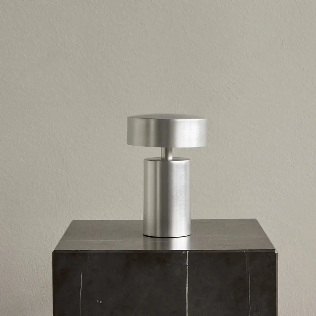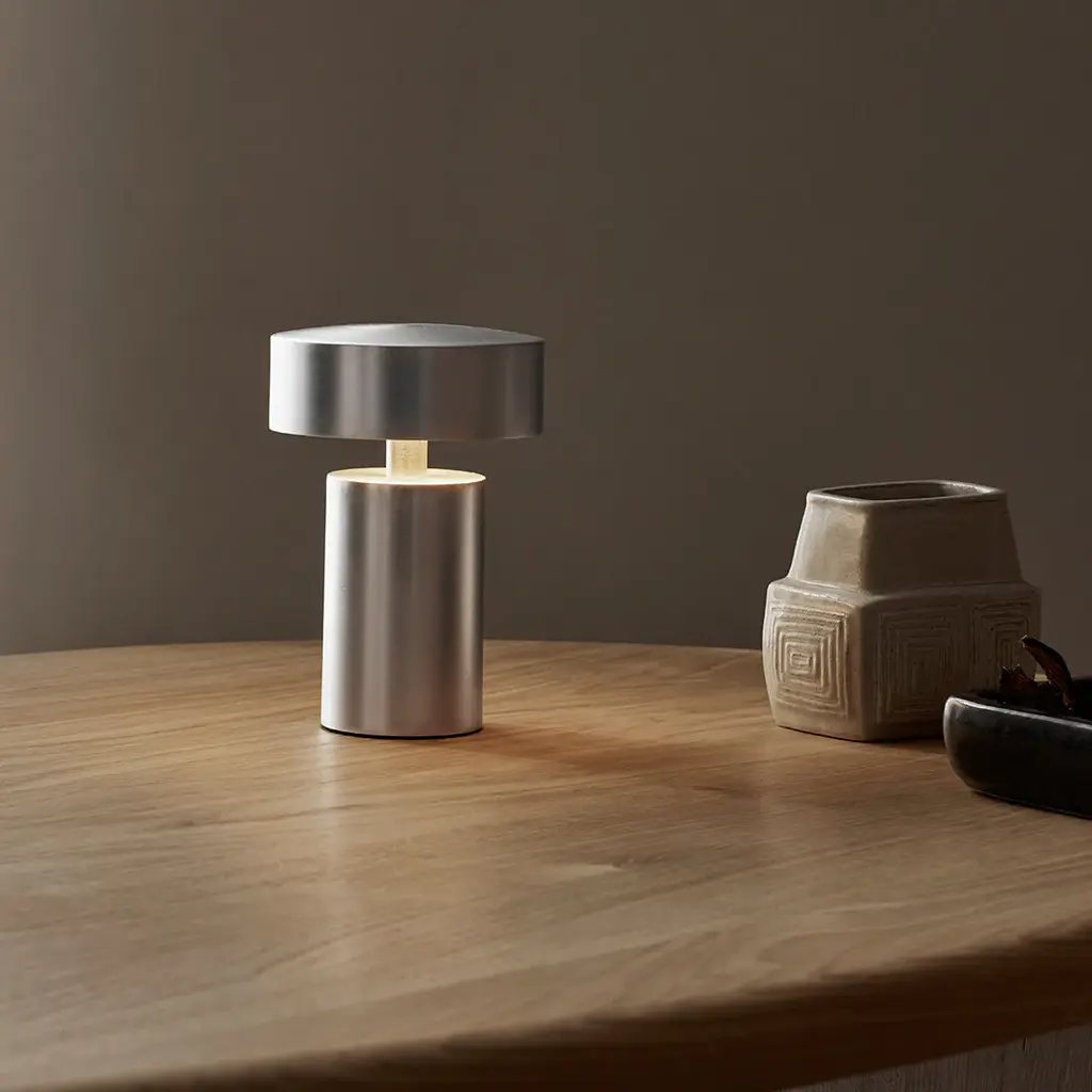 What makes for an ideal table lamp? At MENU, we believe it's a design's ability to make instant visual impact and tell a story, paired with a subtlety that makes the lamp an equal, collaborative partner in defining the overall room ambience. It should incorporate the latest technology, yet also have an organic, natural dimension that conceals technical elements and contributes sculpturally. We're pleased to introduce a new, portable table lamp design that does all this and more. Inspired by the bollards on board ships, the new Column Table Lamp from Norm Architects combines technology and mood-setting style in a striking mushroom shape with modern edge and a natural feel. It's a design that embodies freedom. Freedom of form in its bold, cylindrical elements. Freedom of light in its dimmable LED bulb. And, perhaps most importantly, freedom of movement, as the cordless Column Lamp can go wherever you do. Sprinkle them throughout the office to bring a warm, relaxed ambience to counteract the standard fast pace. Set it down on the lounge coffee table or on the terrace as you enjoy post-dinner conversation or drinks. Use them in the lobbies of hotels or restaurants to draw people in, and swap out the standard table candles with something sturdier and more conversation-worthy. Lightweight and durable, with a beautiful finish, it's a design you'll want to try out in all your favorite spots. The Column Lamp's warm, comfortable light makes any space more inviting, and fits into every decor, from the classic to the ultra-minimalist. The indoor table lamp is constructed from anodized aluminum. It is cordless and rechargeable via a USB charger. The LED light bulb produces soft, diffused, comfortable light with three settings. The design is available in a bronze finish. Important usage information: To keep the internal battery healthy, only leave the Column Table Lamp plugged in during charging, with the lamp off. Do not leave plugged in while in use.