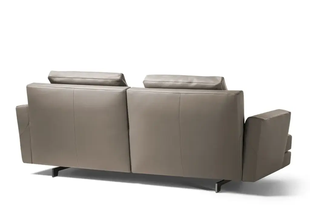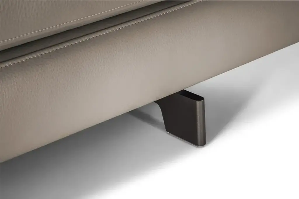 In the social and post-social media era, the Come Together modular sofa system is a real-life meeting point for sharing experiences and conversation. It is an invitation to rediscover the dimension of physical and tangible proximity and the exchange of ideas and emotions in person, looking one another in the eye. Each element has been designed to bring people together. Ludovica and Roberto Palomba have designed an ultra-modern sofa system based on a deliberately limited number of elements designed to offer infinite combinations. Pelle Frau® leather or fabric upholstery. To emphasise the feeling of solidity, the lower edge of the sofa can be enhanced with a band of Cuoio Saddle or Cuoio Saddle Extra leather, embellished with buckles that evoke exquisite leather belts and accessories. The version without the leather band brings out the simplicity of the design. The architectural structure of Come Together features blade-shaped or cylindrical feet, while the armrests are embellished with subtle stitching that creates a subtle graphic interplay. The feet are cylindrical in black anodised aluminium or blade-shaped in brushed steel with a burnished or galvanised Ruthenium finish. The accessories of the Come Together collection are versatile and functional, with elements designed to connect the seats and create true islands of relaxation: the perfect space to read, eat, relax, study, work or have a coffee or aperitif with friends. The end unit features two wide shelves and is the perfect place to rest a book or position a table lamp. The equipped unit that unites the seats features a hidden storage compartment and is ideal for keeping objects close to hand yet out of sight. The storage compartment of the rear backrest, which features a push-pull central drawer, offers plenty of storage space and can even be used to hide the cables of a lamp placed on the shelf. The craftsmanship and exquisite upholstery of the accessories are in perfect harmony with the seat elements. The top surface and shelves in brushed and etched stainless steel with a pewter effect finish offer a visual depth and tactile softness reminiscent of leather and fabric.