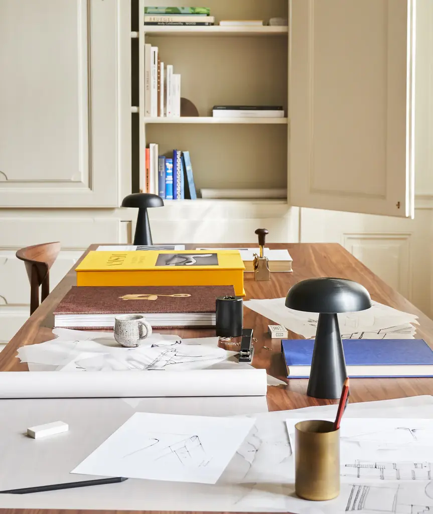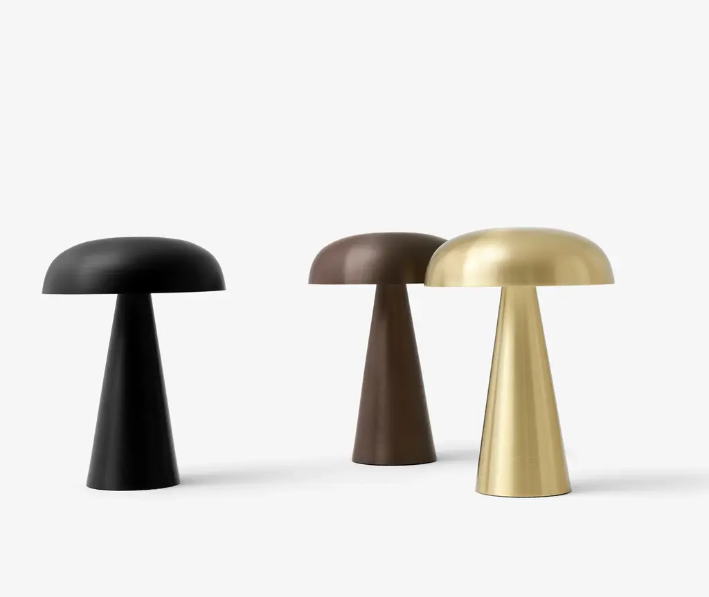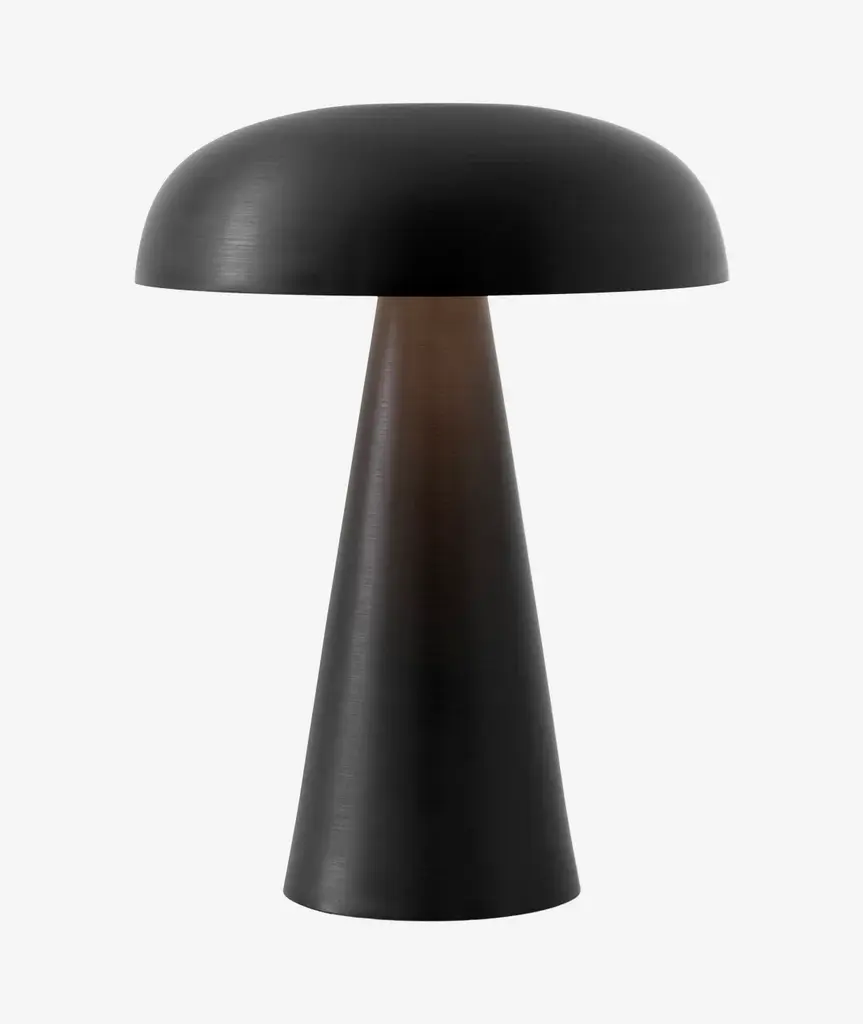 Match lighting to mood with Como SC53, a portable table lamp from Space Copenhagen. Crafted from anodized aluminum, Como’s sturdy base tapers up towards a softly curved, mushroom-shaped shade. This battery-powered lamp can operate for eleven hours at the highest setting, with an extra battery option that allows additional operating. It is easily recharged with a magnetic USB cable or a charging tray.
