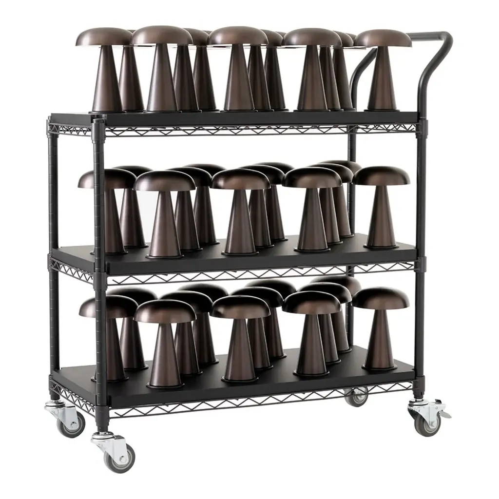 Match lighting to mood with Como SC53, a portable table lamp from Space Copenhagen. Crafted from anodized aluminium, Como's sturdy base tapers up towards a softy curved, mushroom-shaped shade. This battery-powered lamp can operate for nine hours at the highest setting, with an extra battery option that allows additional operating. It is easily recharged with a magnetic USB cable or a charging tray.