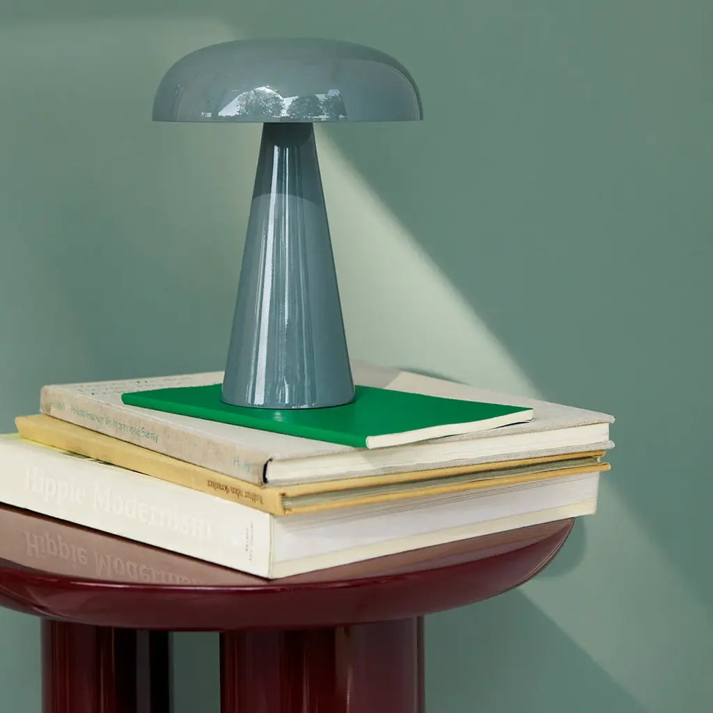 Match lighting to mood with Como SC53, a portable table lamp from Space Copenhagen. Crafted from anodized aluminium, Como's sturdy base tapers up towards a softy curved, mushroom-shaped shade. This battery-powered lamp can operate for nine hours at the highest setting, with an extra battery option that allows additional operating. It is easily recharged with a magnetic USB cable or a charging tray.