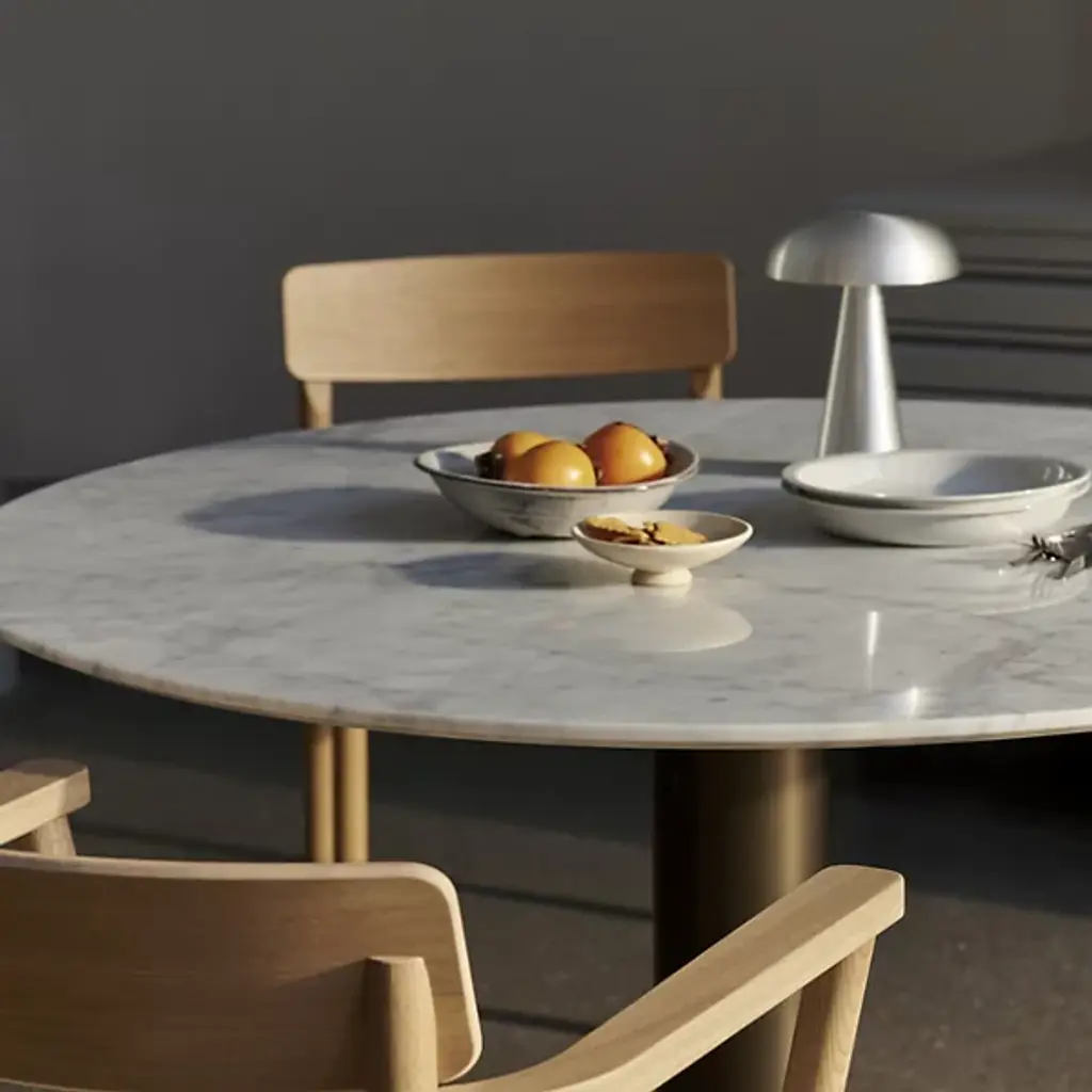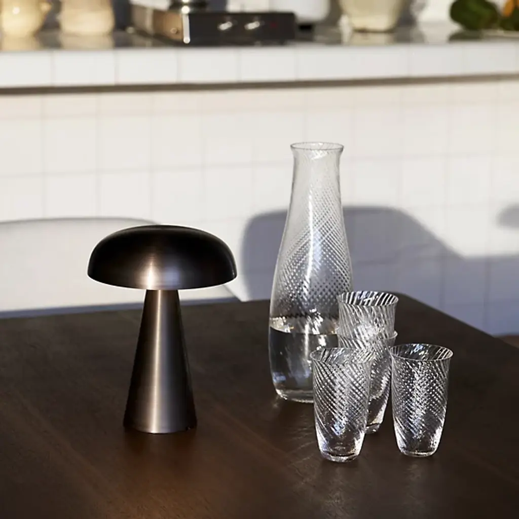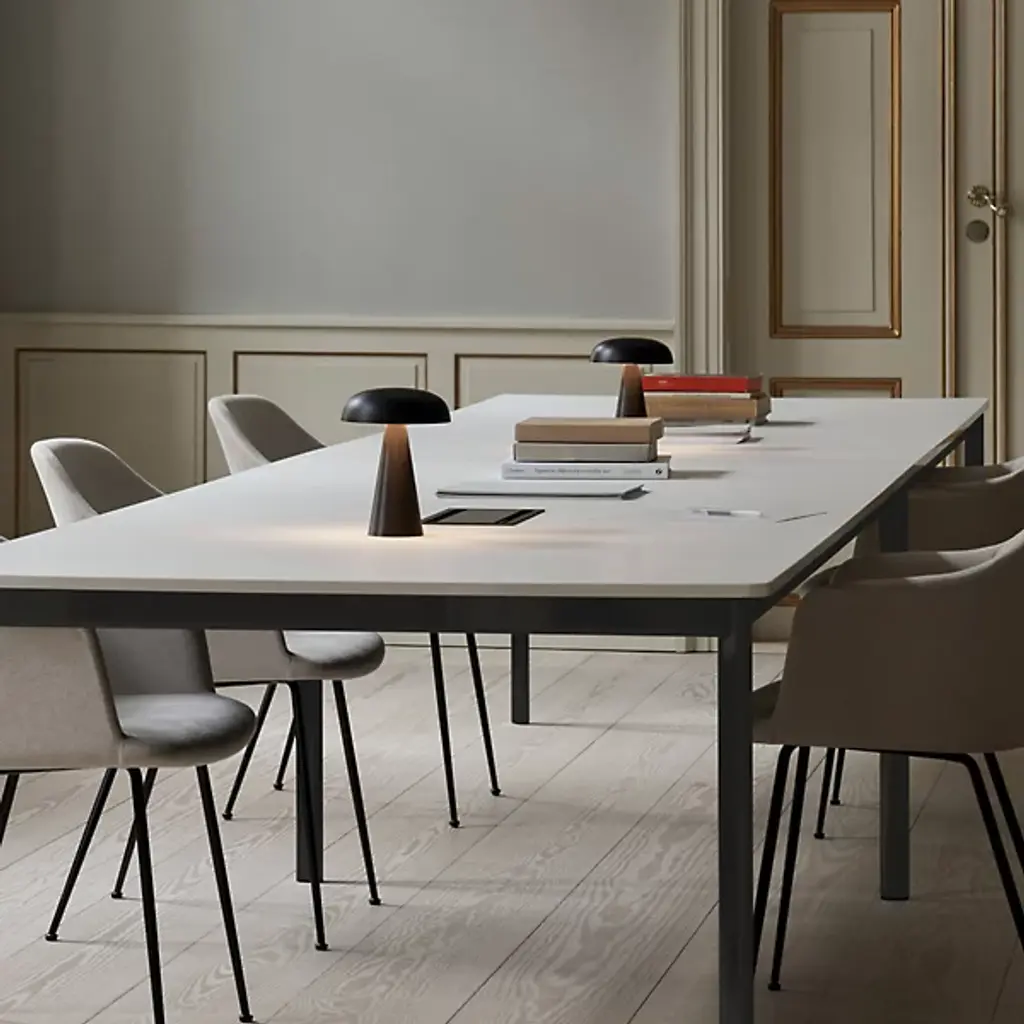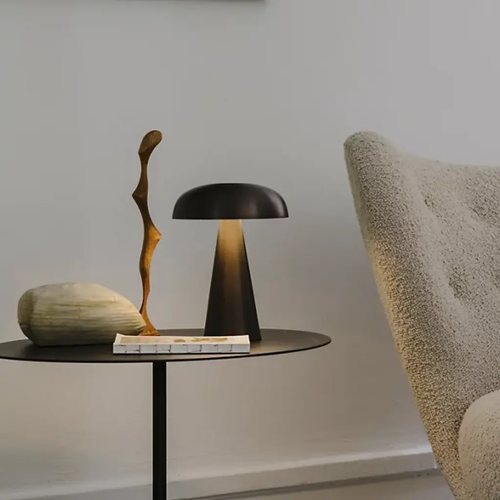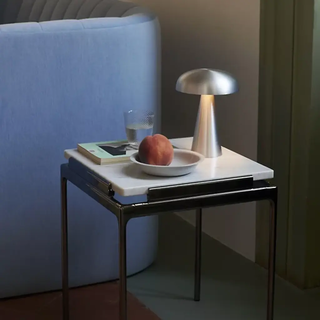 Bring a contemporary aesthetic to your interior design plan with the Como SC53 Rechargeable LED Table Lamp by &Tradition. Designed by Space Copenhagen, this table lamp is composed of fine aluminum. A mushroom-shaped shade neatly perches overtop of a tapering base. Your table lamp is brilliantly illuminated by an LED. Replenish the Como SC53 Rechargeable LED Table Lamp by using a magnetic USB cable or charging tray and take this lamp from place to place.