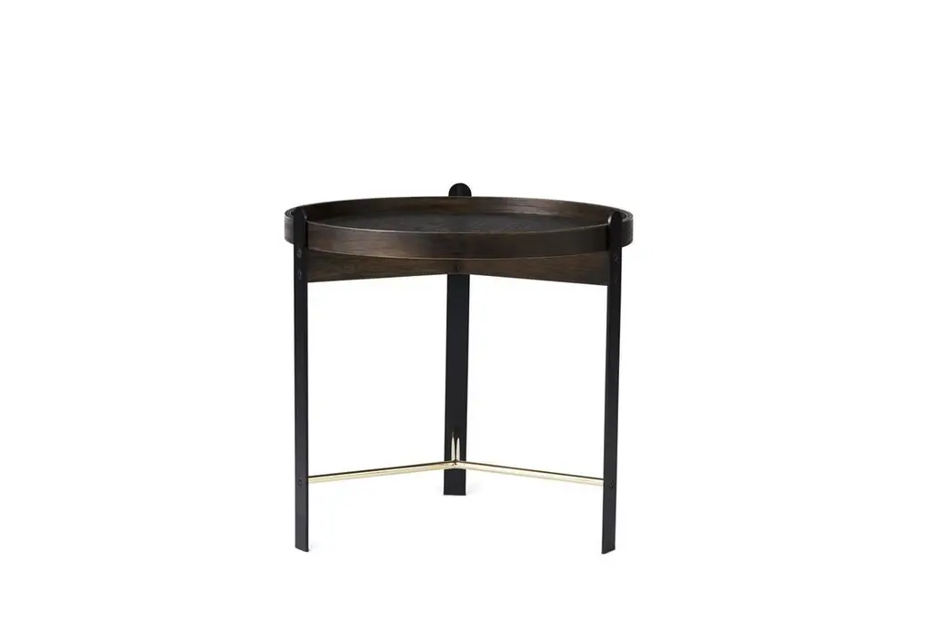 Compose Side Table Smoked Oak Brass Black by Warm NordicDimensions: D50 x H49 cmMaterial: Smoked oak veneer/Powder coated steel and brass coloured frameWeight: 2.5 kgAlso available in different finishes. Please contact us.Stylish coffee table and side table with a unique combination of wood and metal for a distinct lightness. Compose comes in two sizes and brings Nordic aesthetics into your home. The large table is perfect as a light and elegant coffee table, while the small table is the natural choice as a side table. Both as a supplement in the living room where an extra beautifully designed, high-quality table is always a joy or as a stylish night table in your bedroom. The tabletop is made of wood with texture and warmth, while the coloured metal frame comes with beautiful chrome and brass details for an exclusive look.Warm Nordic is an ambitious design brand anchored in Nordic design history and with a timeless, aesthetic style that inspires you to appreciate the little things in life. The company is the result of several years’ intense work on developing a new design brand with design history, quality and personality at its core. Warm Nordic boasts a colourful and charming universe of furniture, lamps and accessories full of personality. Our designs encapsulate the Nordic spirit, which in its essence is timeless, inclusive and warm.