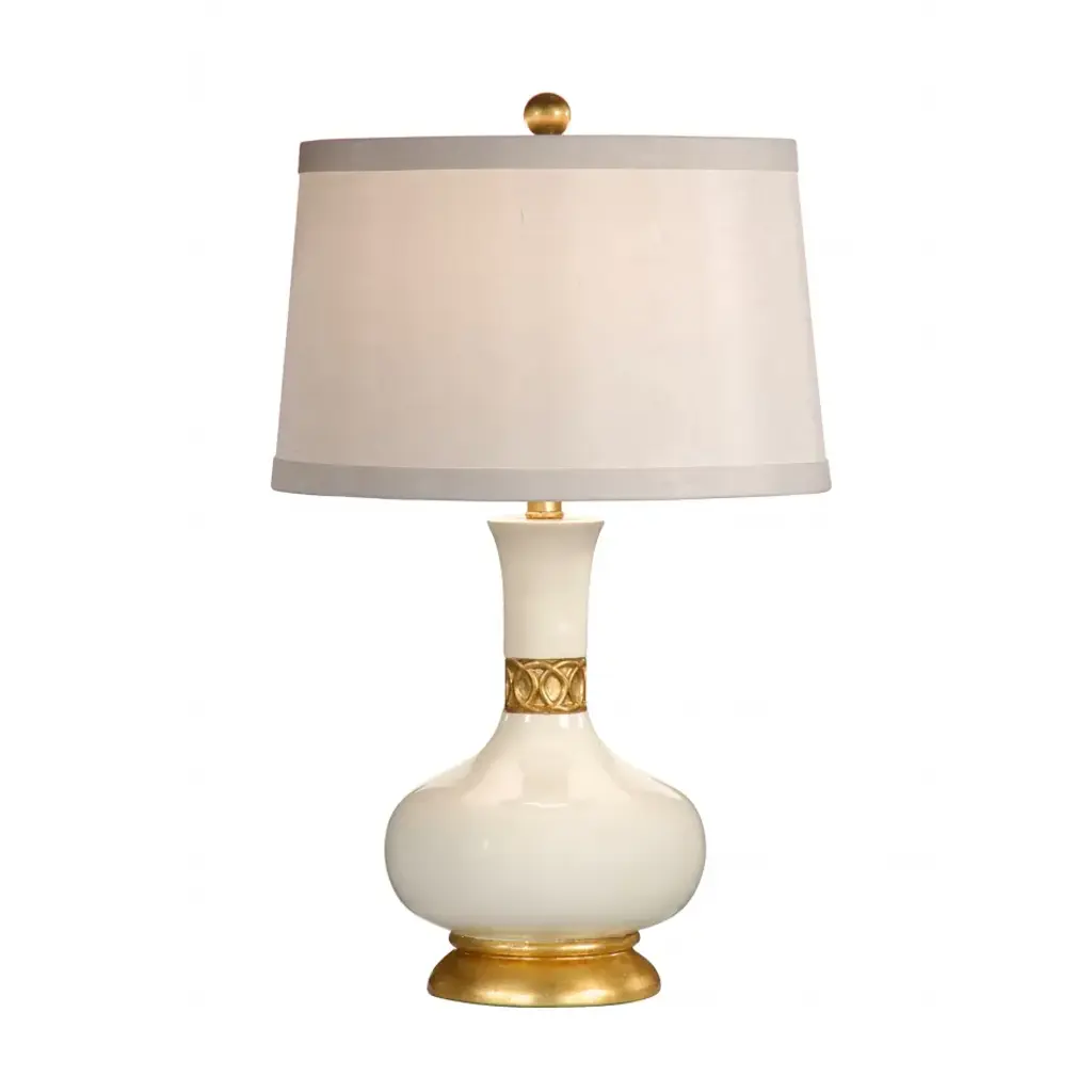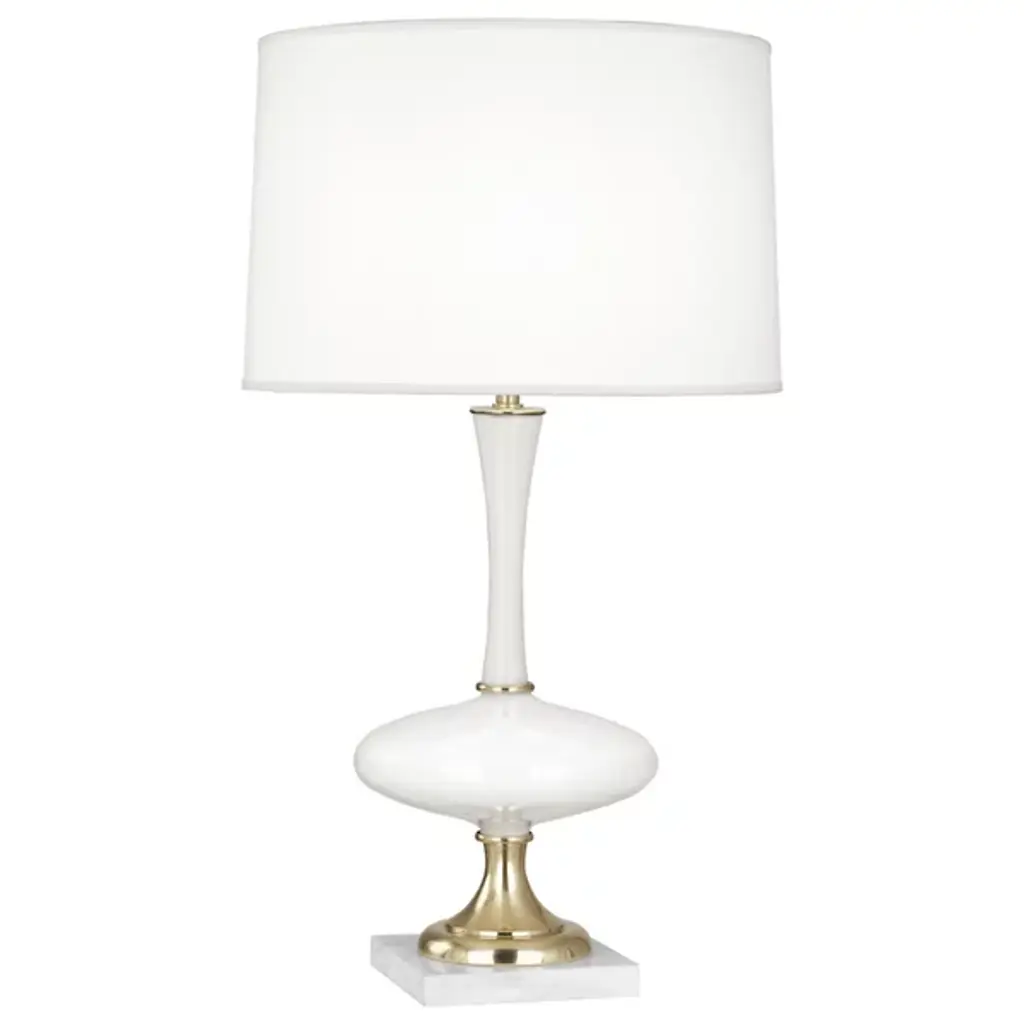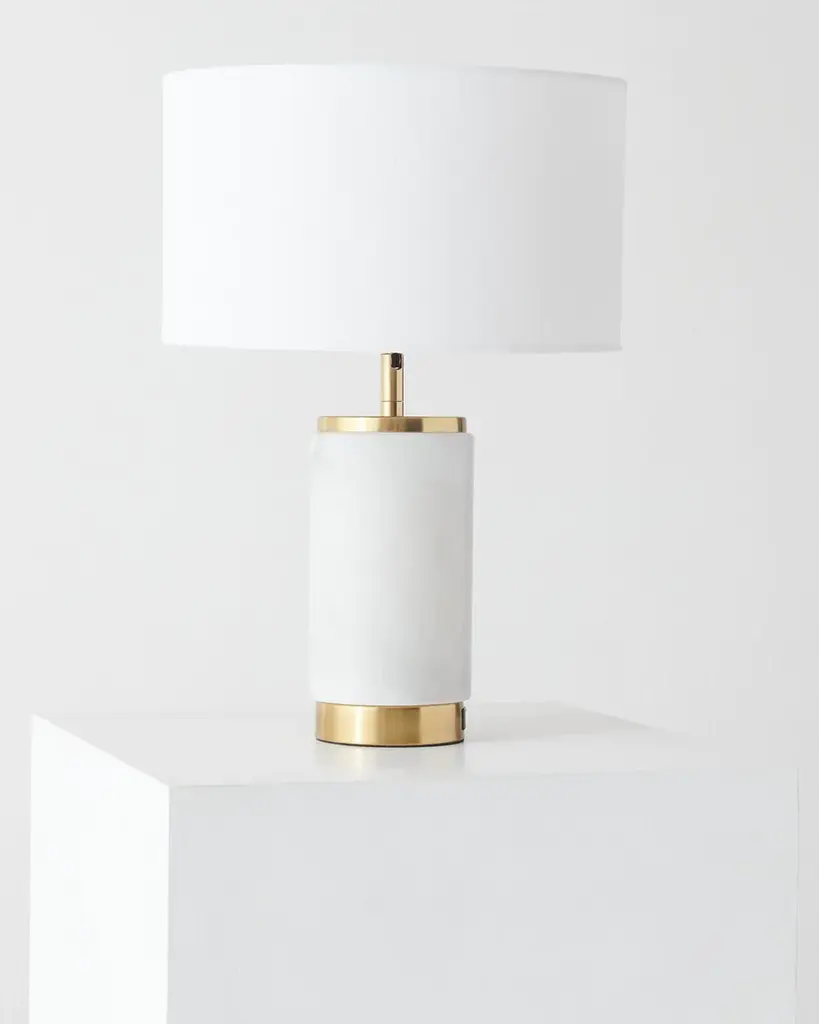 The Compressa Table Lamp showcases a modern, fluted cylindrical form crafted of fine Italian crackled ceramic. The column-like body of the piece is interrupted by a gorgeous ovate shape of sparkling gold ceramic and matched by a circular base with acrylic trim, contributing stunning visual interplay in form and texture. Deceptively simple, the Compressa features an ovate finial, matching the golden accents throughout the piece to complete the look. This artistic statement piece creates a sculptural focal point into a wide range of interior décors.