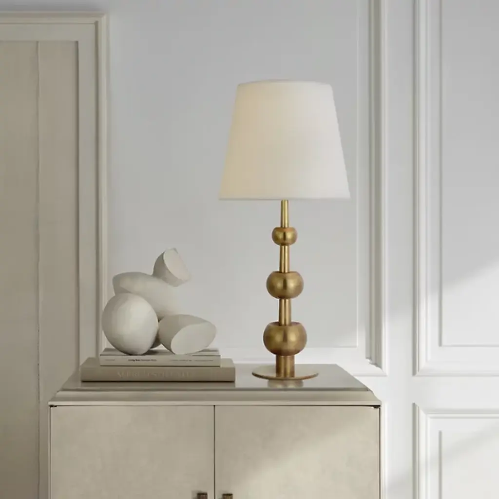 The Comtesse Triple Table Lamp from Visual Comfort Signature, an extraordinary Paloma Contreras creation, masterfully blends sculptural and geometric aesthetics. This exquisite lamp emits an unforgettable illumination, effortlessly accentuating or spotlighting any area in your home with its timeless beauty and elegant charm. Meticulously designed with attention to detail, the Comtesse Triple Table Lamp adds a sophisticated touch of brilliance to your living spaces, creating an ambiance of refined allure and style.