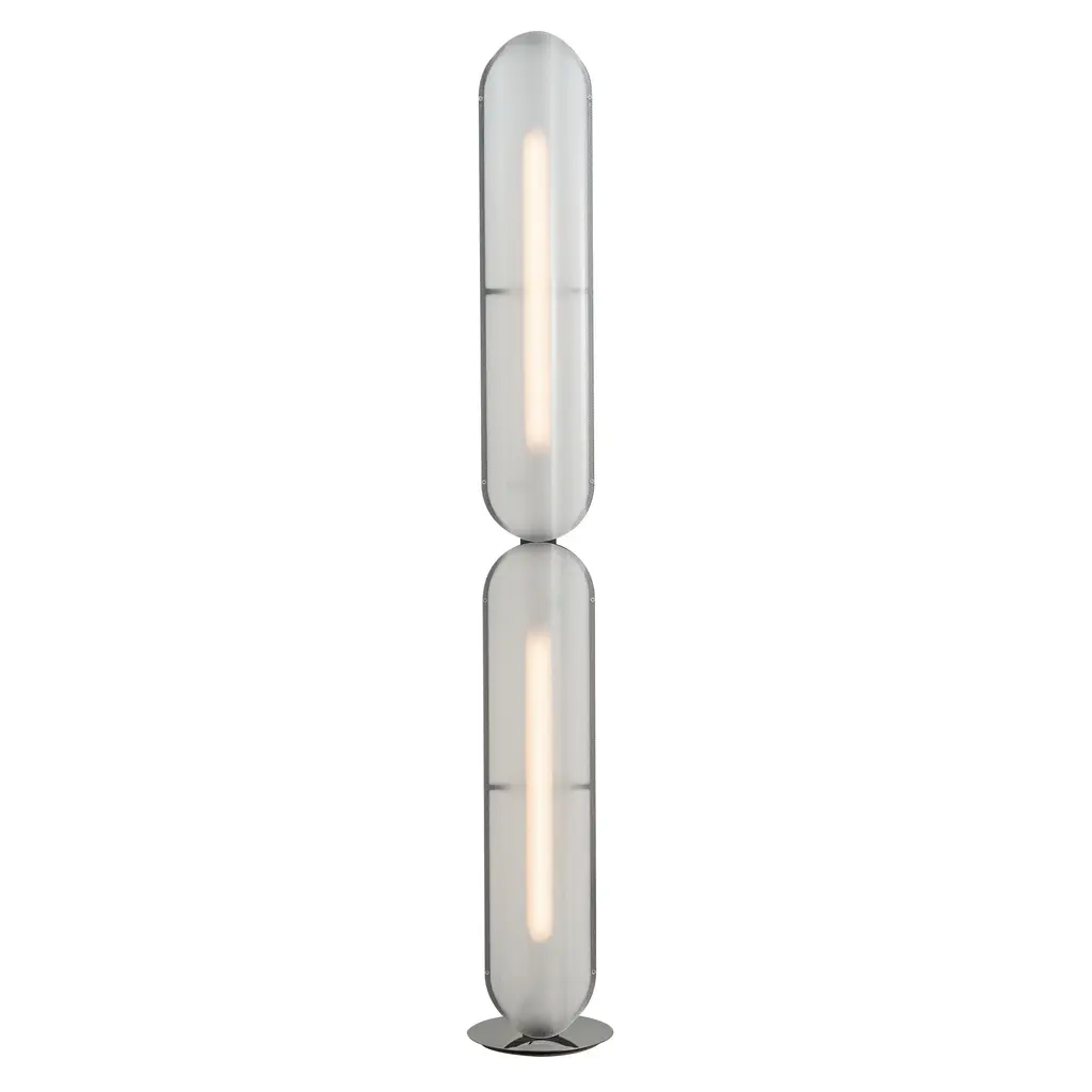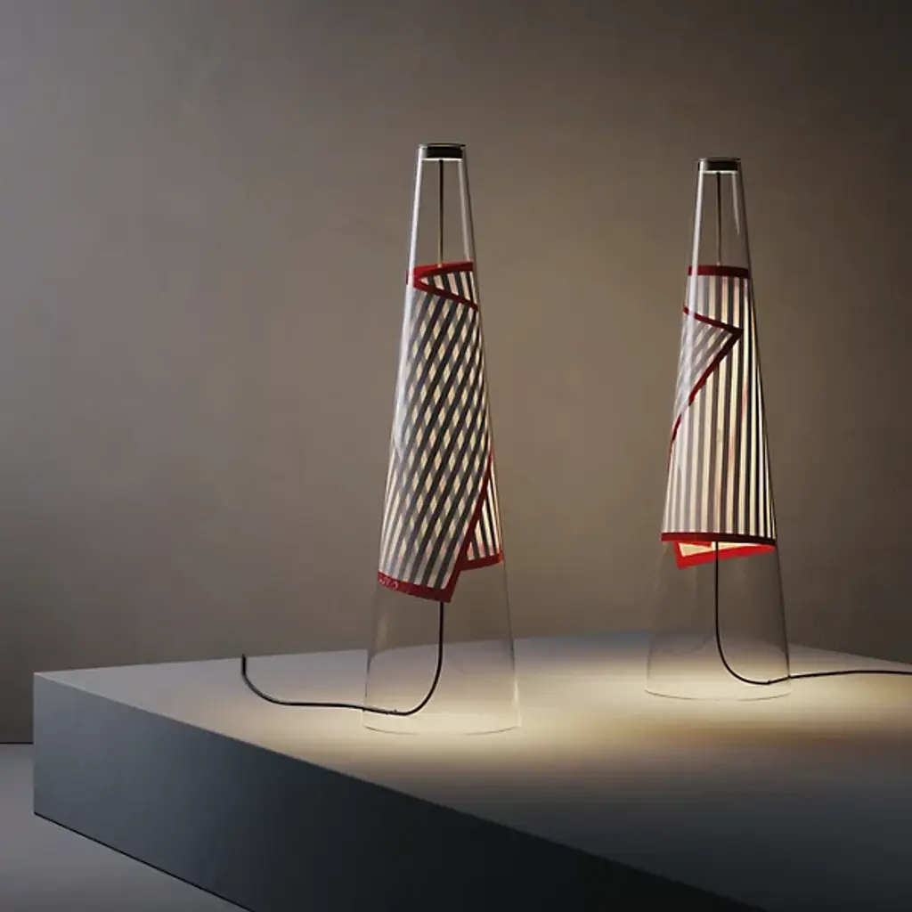 The Cono di Luce LED Table Lamp from Lodes brings accessible, efficient artistry to contemporary interiors. This Italian-made lamp is a collaboration between Lodes and renowned artist and designer Ron Arad, blending high-tech expertise with soulful creativity. Energy Star compliant, it features a conical Pyrex glass shade with a curled, flexible printed circuit board with LED lamping. The minimalist frame supports the layered design as it rests on flat surfaces, creating stylish shadows, while the swirling circuit board proudly displays the fixture’s name on its lower edge.