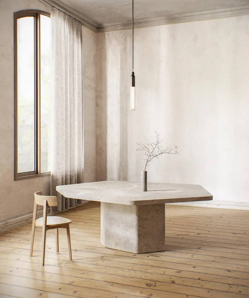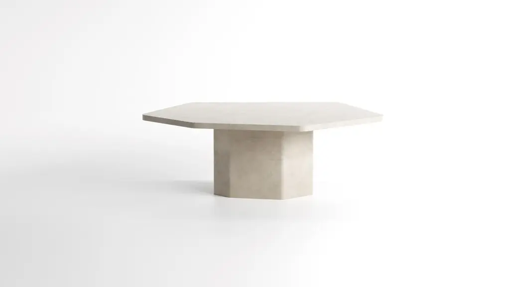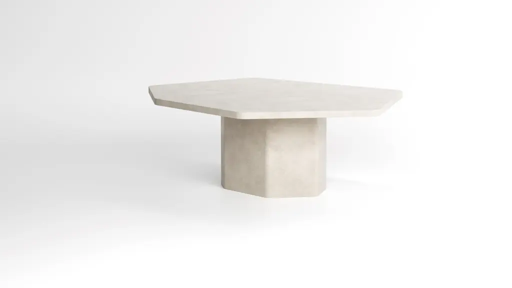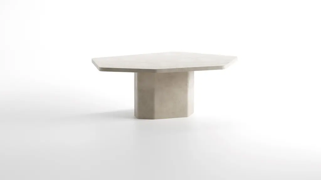 The Palmer collection introduces a more brutalistic and robust collection with straight edges. Drawing inspiration from fracture lines and with a nod to their favorite Belgian architect Juliaan Lampens. Starting from a base of plywood, layers of Mortex© are added to create the table. Mortex© is a decorative technique based on lime, acrylic and pigment. This technique is added manually which gives an imperfectly perfect result and gives each table a unique appearance with color nuances, imperfections and small irregularities. These form the character of the product and the technique. The appearance of the furniture is partly determined by the degree of polishing and the final finishing layer. Each piece of furniture or object is completely unique and handmade in our own workshop. Matt finish by means of a water-based PU lacquer. The colors are manually composed of natural pigments.Only for indoor use. Material: Ply wood, Mortex© (decorative technique based on lime and pigment) Armand & Francine (A&F) is a creative duo comprised of Gert Hellebaut and Cathy Poppe, based in Ghent, Belgium. Driven by a desire for creative freedom, they embarked on a journey as self-taught designers which led them to establish their studio where they handcraft solid, unique furniture and objects for interiors. A&F combine traditional craftsmanship with organic and flowing lines, reflecting their love for textures, materials, asymmetry, and imperfect beauty. Cathy's creative instincts and Gert's technical skills complement each other, resulting in their distinctive and refined designs. A&F believes that furniture should not only be visually appealing but also serve as functional and emotional objects that can be cherished for generations. The design process of A&F involves experimentation and refinement, always researching new techniques, structures and materials. Armand & Francine believe in a local approach and prioritize quality and craftmanship, personally handling every aspect of the production process in favor of maintaining control over the final product.
