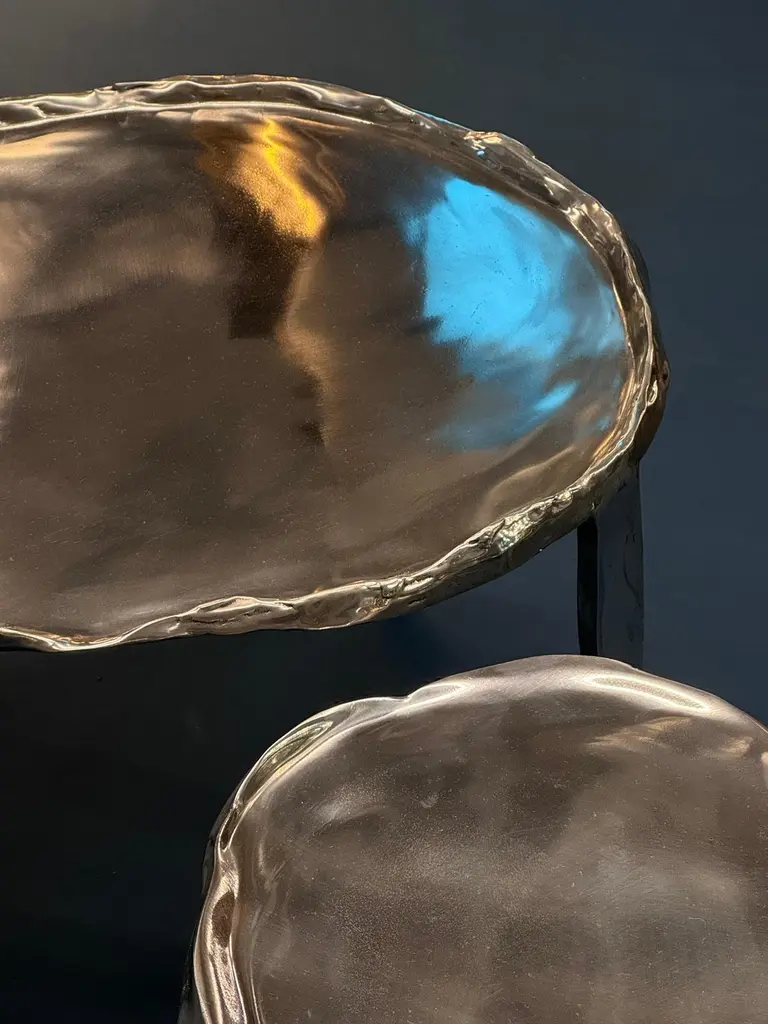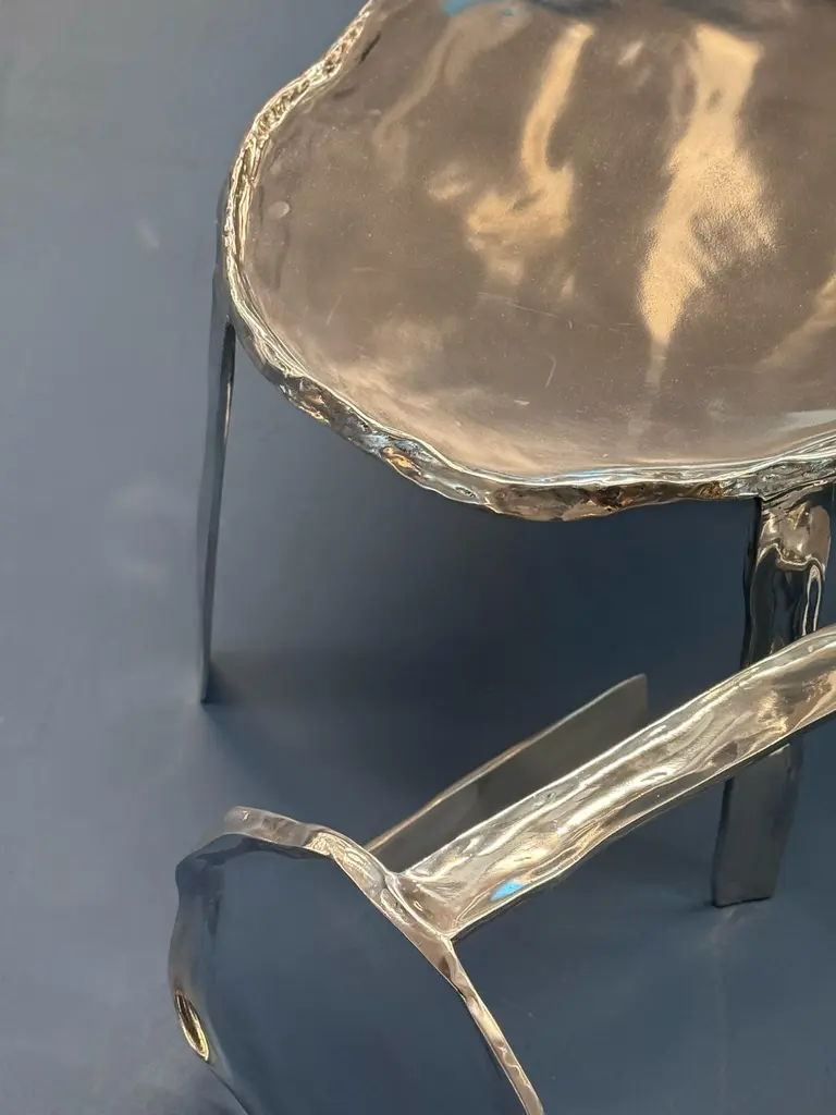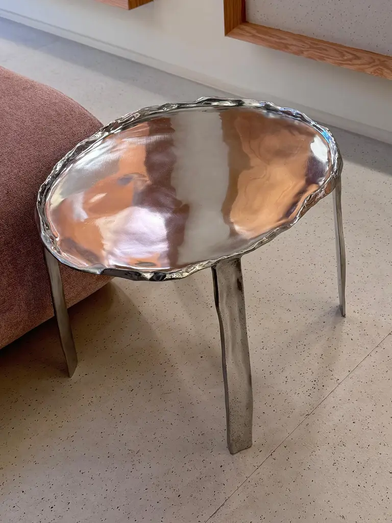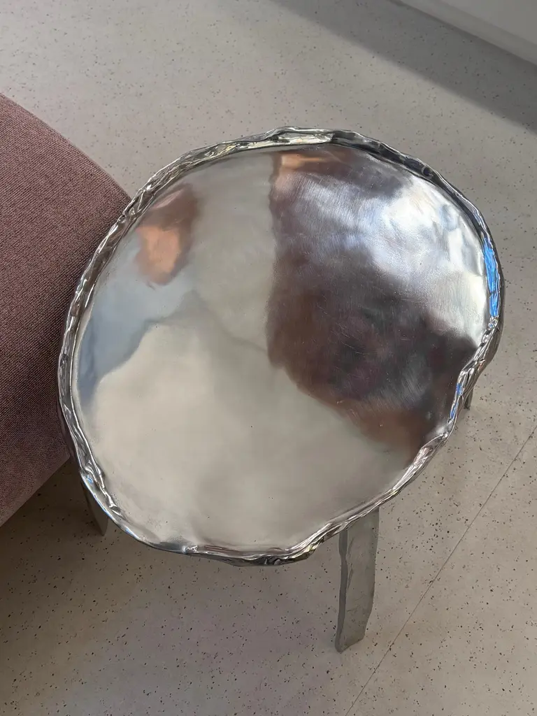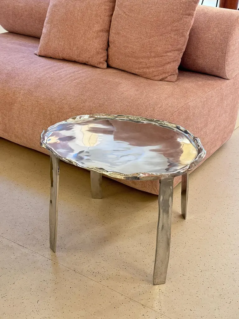 This side table is made from cast aluminum, created in the same factory where designer Cris Bertolucci produces all of her cast metal lamps.This table is one of the first objects created by the designer, representing a major milestone in her career: the creation of objects other than lighting pieces.The polished aluminum has a very beautiful shine and fits within the aesthetic that the design is presenting in 2024, as presented at the Milan fair.The table is light and can fit into any corner of a project, providing light and charm.Due to the artisanal casting process, each table presents small irregularities and particularities, making each piece unique.
