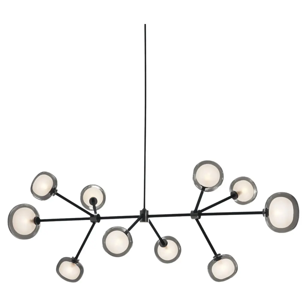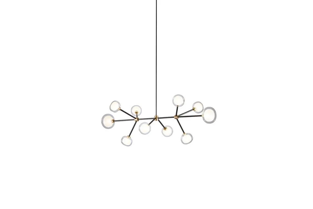 Chandelier Nabila 552.10 by Corrado Dotti x TOOY10 LightsUL Listed Compliant with US electric systemModel shown:Finish: Brushed brassColor: Clear glassCanopy: Ø 13 cmLighting source : 10 x G9 220/240VPendant: Cable length 30/ 60 / 90 cm. 50s Inspired collection of elegant and sophisticated lamps representing the detail to enrich any location. A double-sided spherical bright object in borosilicate glass makes these lamps available in different compositions and a structure made by metal coated with epoxy powder enriched with brushed brass or black chrome details. Different varieties are available for any situation: chandeliers (in five different models) or table lamp, bedside (smaller), floor or wall (available in three different models for single or composite personalized installation). Richness and sobriety all in one single element.A light to give warmth, a light to give attention, a light to get lost in one’s thoughts. Each reflection, a state of mind. Fascinated by the infinite facets of light, the TOOY brand offers lighting that gives value to the experience of living in spaces through a wide and versatile range of products capable of telling a story.