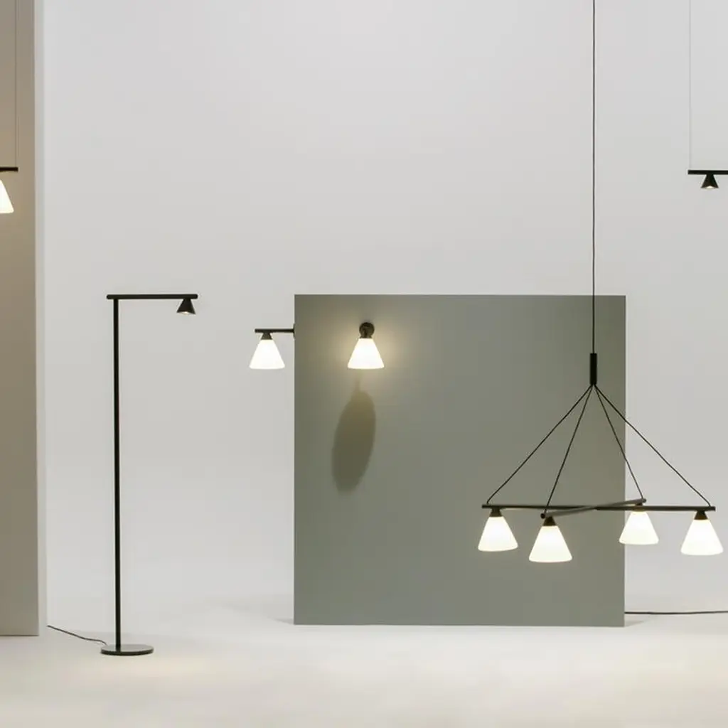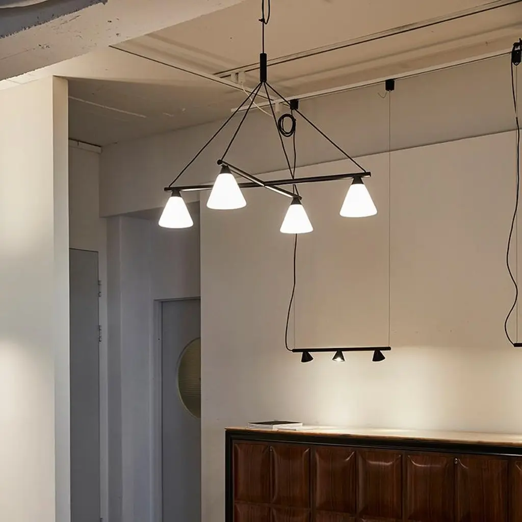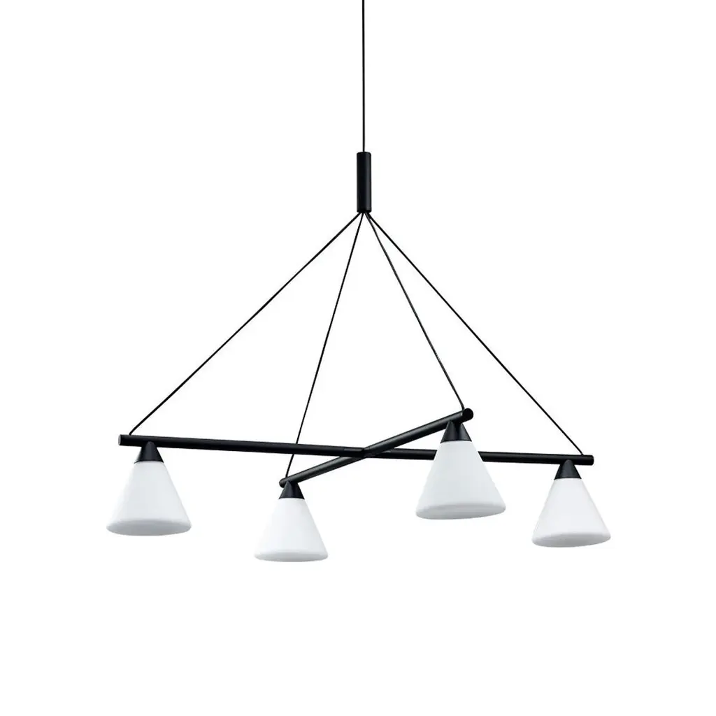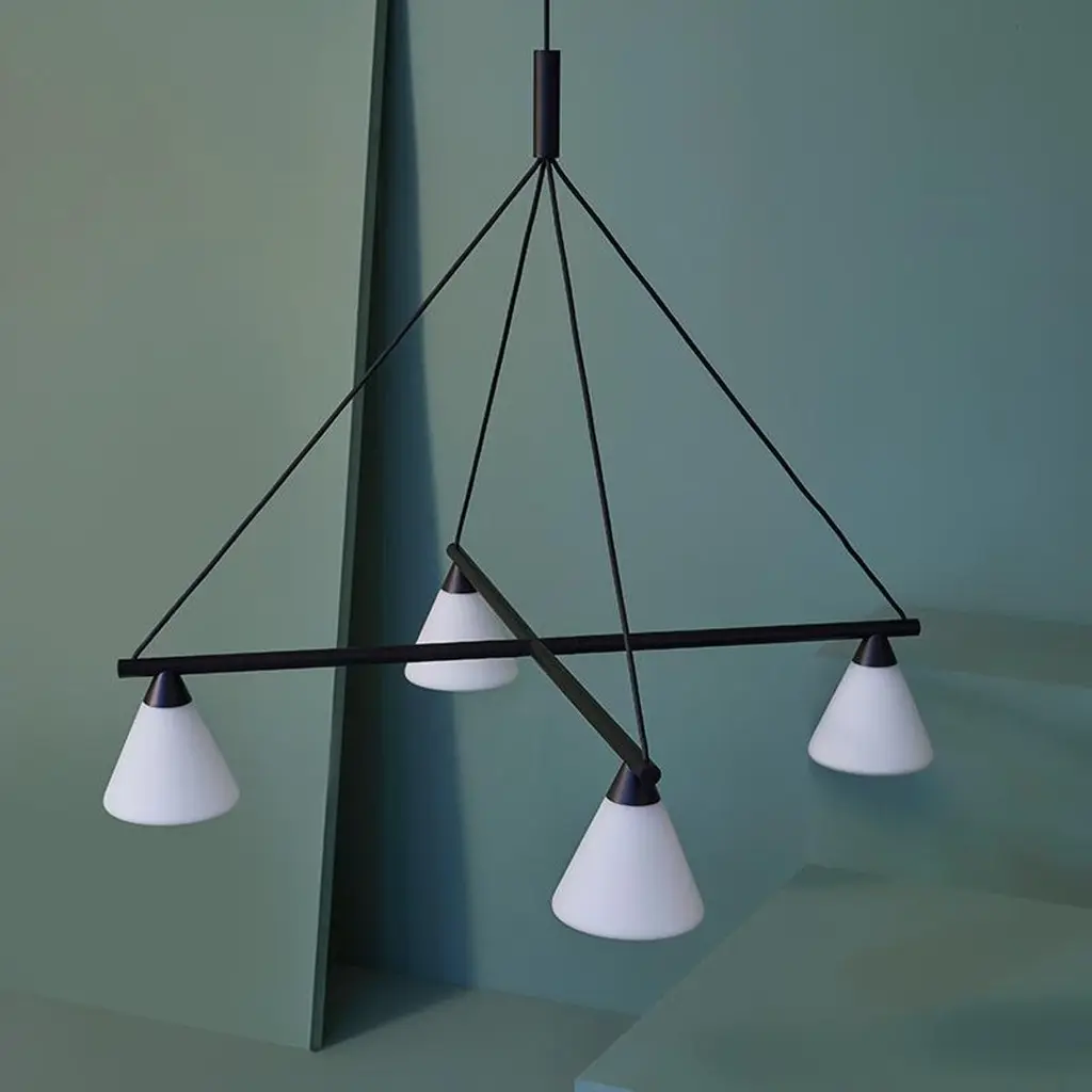 Probe chandelier by AGO Lighting x BIg-GameAluminum, Opal glassUL ListedG9 x 4 (Bulb not included) Max. 80 W (20 W x 4 ea)Dimensions: H. 63.6 x 85.5 cmAGO is a Korean design studio specialized in lighting. AGO is based in the area of central Seoul named Euljiro which has been at the heart of Korean industry. Many small factories and workshops remain and it is where AGO started, collaborating with the skilled craftsmen and makers of the area. AGO develops lightings collections in collaboration with contemporary design studio like Bymars, Word or Big-Game for example. Each project is a constant search of the perfect balance between beauty and function with light.PROBE is a contemporary lighting that serves an honest and essential function with an instinctive and refined geometric shape. PROBE comes with various types of lamp; A spot lamp, ambient lamp, wall lamp, standing lamp, and chandelier to be adapted to different spaces with a perfect combination of lightings. The customer also can choose from ambient or focused beam light to find the best light quality in the space.