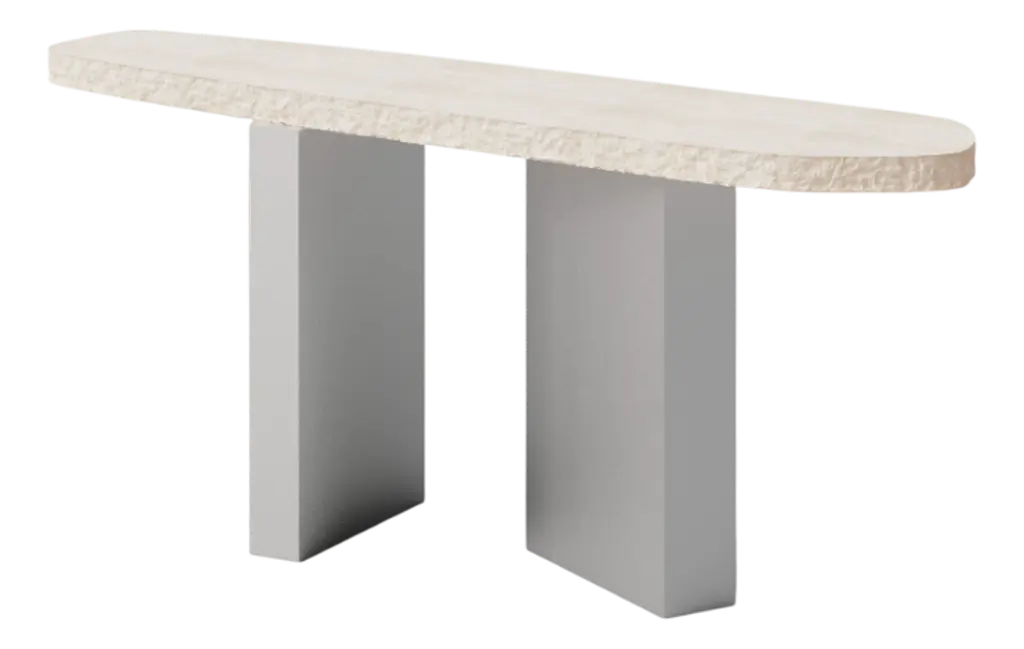 The Douglas collection introduces a more brutalistic and robust collection with straight edges. Drawing inspiration from fracture lines and with a nod to their favorite Belgian architect Juliaan Lampens. Starting from a base of plywood, layers of Mortex© are added to create the table. Mortex© is a decorative technique based on lime, acrylic and pigment. This technique is added manually which gives an imperfectly perfect result and gives each table a unique appearance with color nuances, imperfections and small irregularities. These form the character of the product and the technique. The appearance of the furniture is partly determined by the degree of polishing and the final finishing layer. Each piece of furniture or object is completely unique and handmade in our own workshop. Matt finish by means of a water-based PU lacquer. The colors are manually composed of natural pigments.Only for indoor use. Material: Ply wood, Mortex© (decorative technique based on lime and pigment) Armand & Francine (A&F) is a creative duo comprised of Gert Hellebaut and Cathy Poppe, based in Ghent, Belgium. Driven by a desire for creative freedom, they embarked on a journey as self-taught designers which led them to establish their studio where they handcraft solid, unique furniture and objects for interiors. A&F combine traditional craftsmanship with organic and flowing lines, reflecting their love for textures, materials, asymmetry, and imperfect beauty. Cathy's creative instincts and Gert's technical skills complement each other, resulting in their distinctive and refined designs. A&F believes that furniture should not only be visually appealing but also serve as functional and emotional objects that can be cherished for generations. The design process of A&F involves experimentation and refinement, always researching new techniques, structures and materials. Armand & Francine believe in a local approach and prioritize quality and craftmanship, personally handling every aspect of the production process in favor of maintaining control over the final product.