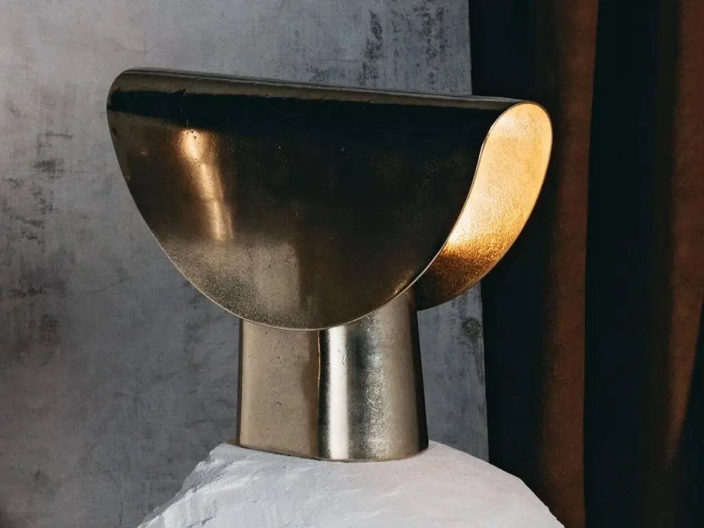 Brass Fold Light by Henry WilsonDimensions: W 35 x D 9 x H 23 cmMaterials: BrassA cast light which appears to have been draped over it's base. A light fitting is captured inside and glows outward.Each casting is manufactured in small batches meaning slight variations will occur from piece to piece. Production marks may include slight pour ripples or surface pitting.It will arrive with a bright finish but will oxidise and darken over time to reveal a distinctive patina. Simply use a metal polish to restore a like-new finish.Measures: 350 x 230 x 88mmPre-release, current lead time 6-8 weeksHenry Wilson's work combines a rational, democratic utility with an element of sculptural expression. There is a clear form and function in our products, but it’s important they also have feeling. We are interested in the awkward beauty that comes from something made by hand. We like to explore how imperfection can be introduced into an Industrial process, to make something at scale that retains a sense of individual charm.Permanent Collections and Exhibitions- Museum of Applied Arts and Sciences, Sydney, Australia- Art Gallery of Western Australia, Perth, Australia- 'Sempering' XXI Triennale, MUDEC, 2016, Milan, Italy.All our lamps can be wired according to each country. If sold to the USA it will be wired for the USA for instance.