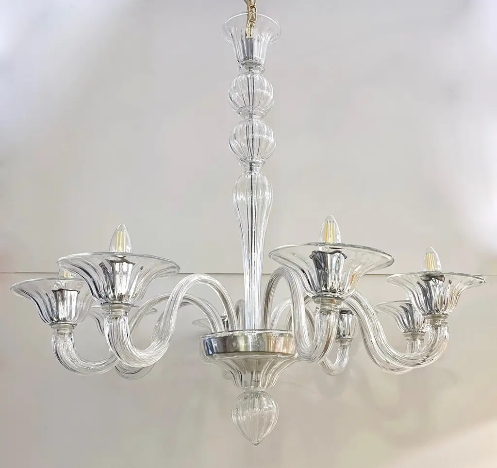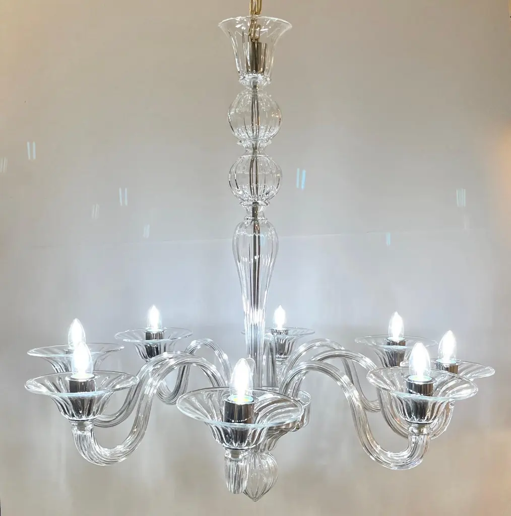 Contemporary Minimalist Italian 8-Arm Crystal Murano Glass Modern Chandelier