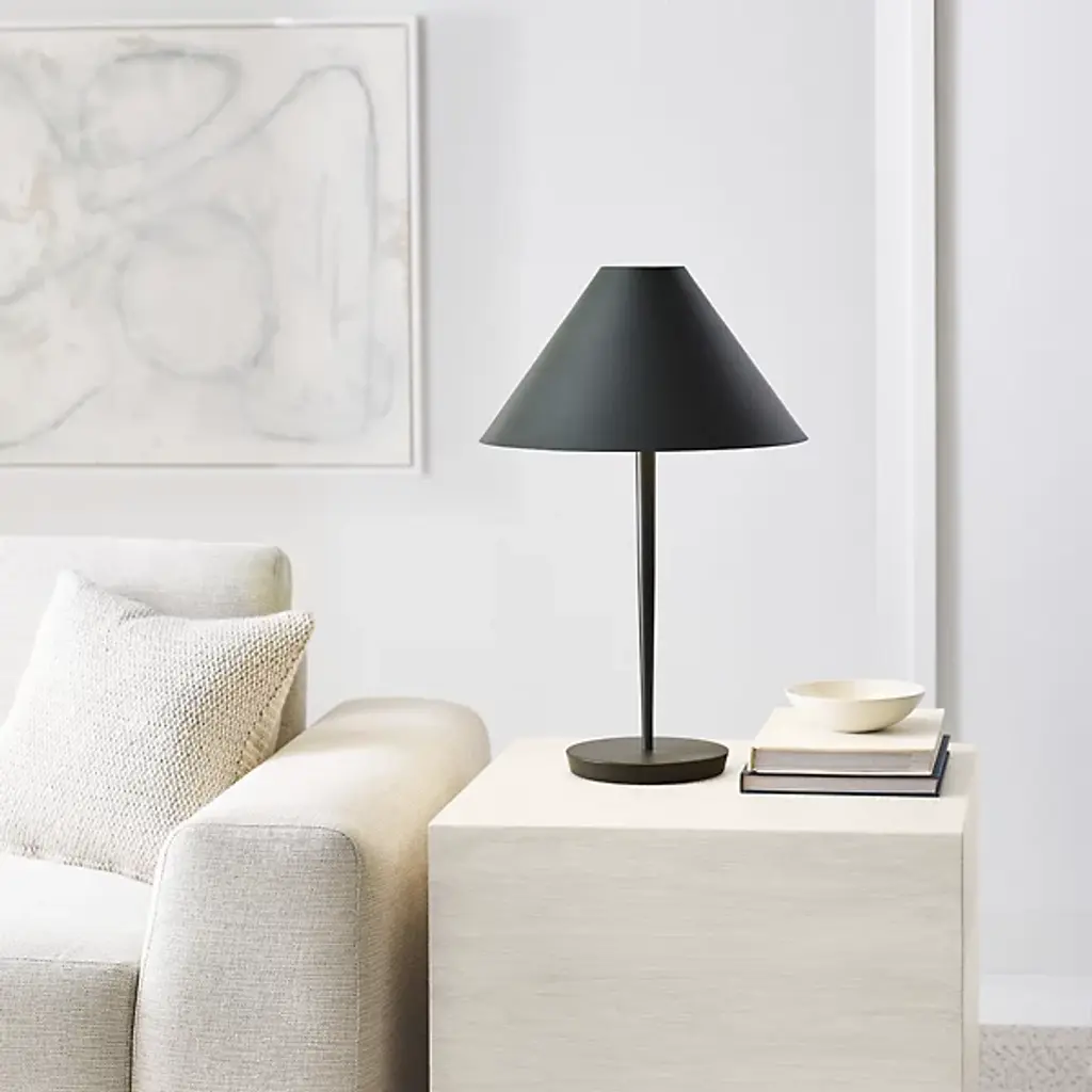 The Contra Table Lamp from Visual Comfort Studio reinterprets classic bistro lighting through Kelly Wearstler's distinctive lens. Its closed-top conical steel shade directs light downward in a focused pool rather than diffusing it throughout the room—perfect for creating intimate zones within larger spaces. The subtle reverse taper of the stem provides a thoughtful detail that reveals itself only on closer inspection. The lamp’s convenient socket switch makes operation simple, while the dimmable feature gives you control over the ambiance. This piece brings character to bedside tables, desks, and side tables without dominating the surrounding décor.