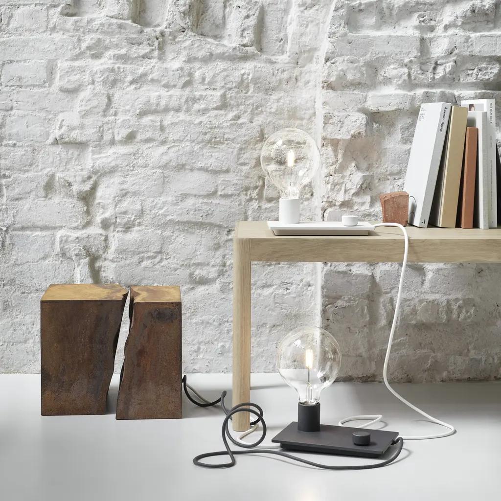 With a playful spin on Scandinavian style, Muuto's Control Table Lamp plays up a vintage-style naked bulb. Conceived by Stockholm-based TAF Architects, founded by Gabriella Gustafson and Mattias StŒhlbom, the lamp riffs on industrial design, with a dial to adjust the lighting level. Cast aluminum with a fine powder-coat finish, in black, white, grey or an appealing dusty red accent tone.