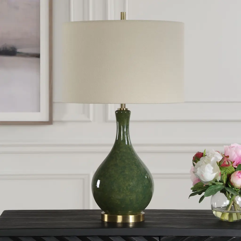 Copper Grove Emerald Green Ceramic Table Lamp With Gold Metal Accents - Emerald Green
