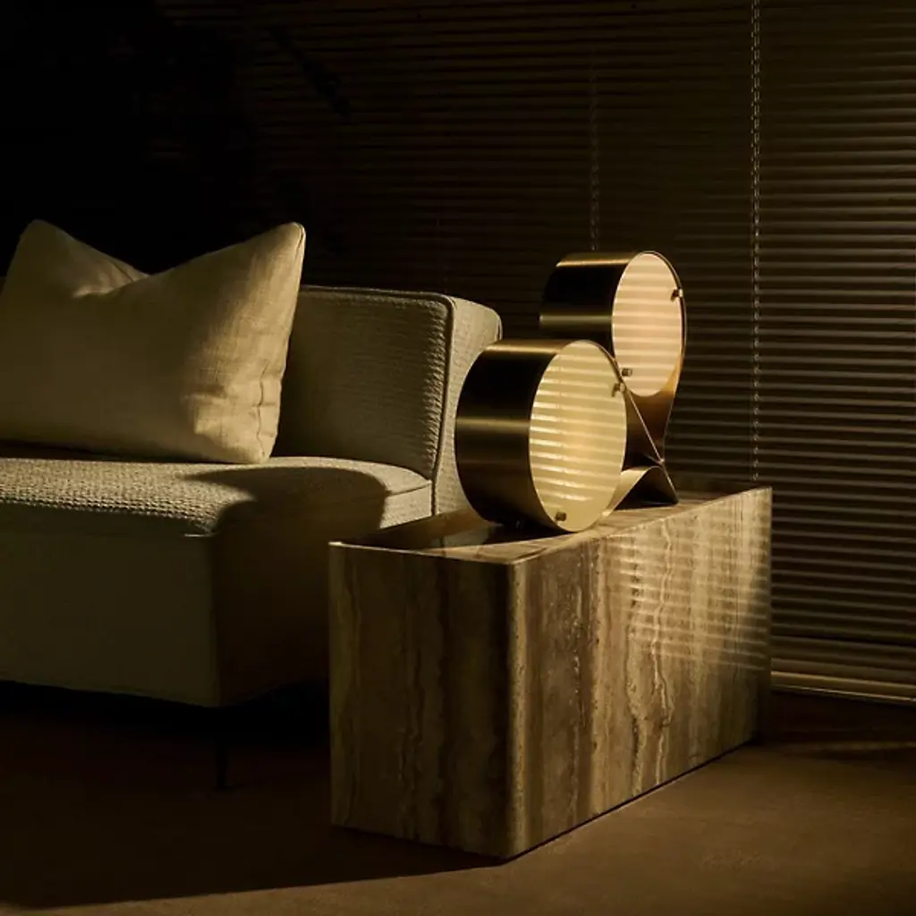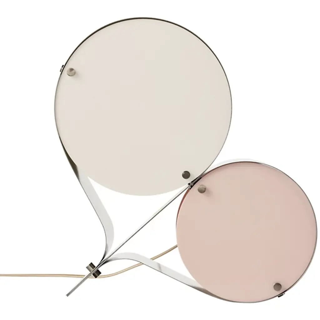 The Coppia Table Lamp from GUBI, designed by Vibeke Fonnesberg Schmidt in 2024, brings a sculptural presence with its twin-disc plexiglass diffusers encased in a curving metal frame. Blending industrial strength with fluid geometry, its tempered stainless steel structure reflects a warm glow, contrasting beautifully with the nature-inspired diffusers. Versatile in design, this lamp transitions effortlessly from tabletop to bedside or windowsill. With an inline switch for easy operation, the fixture offers a refined balance of form and function in a contemporary Scandinavian aesthetic.