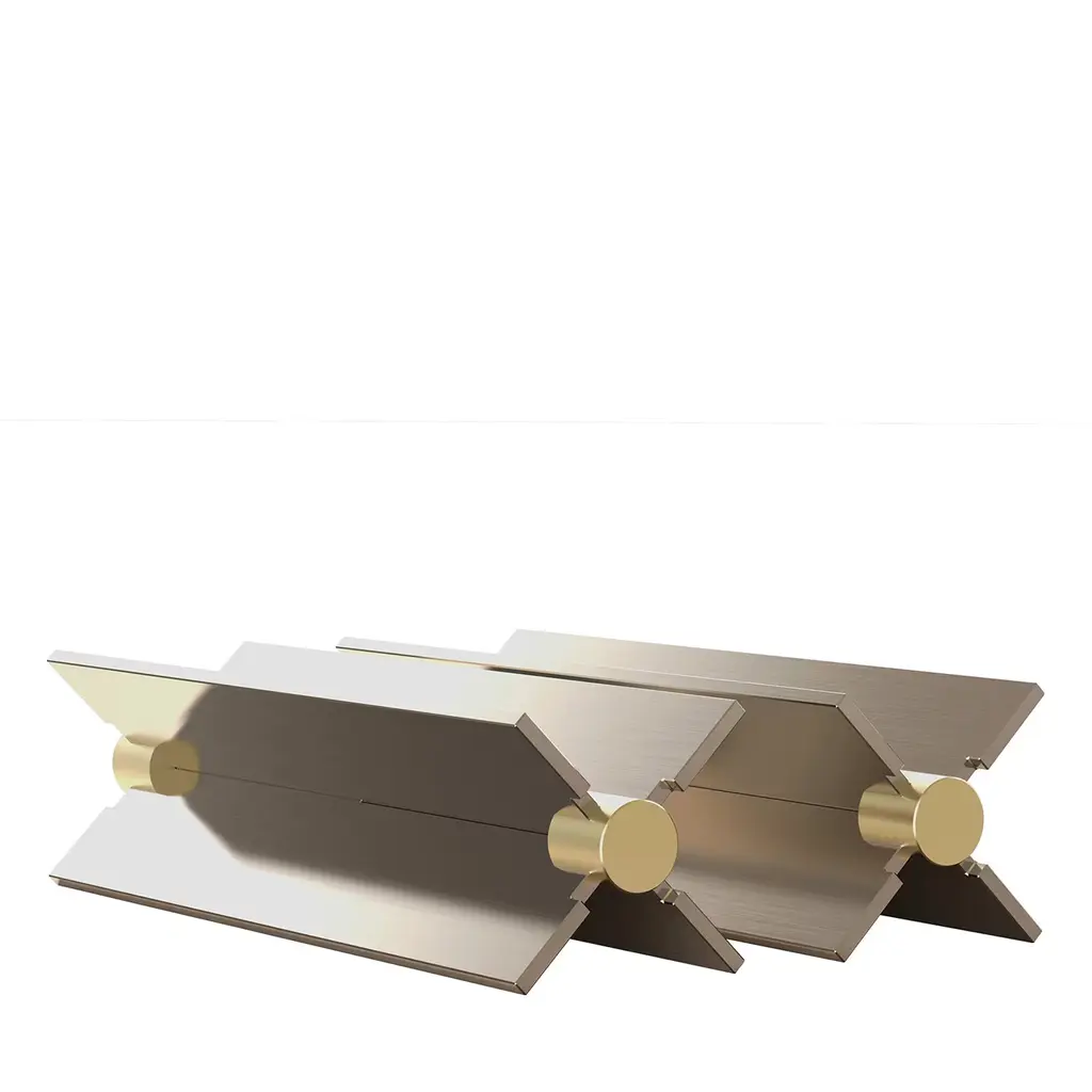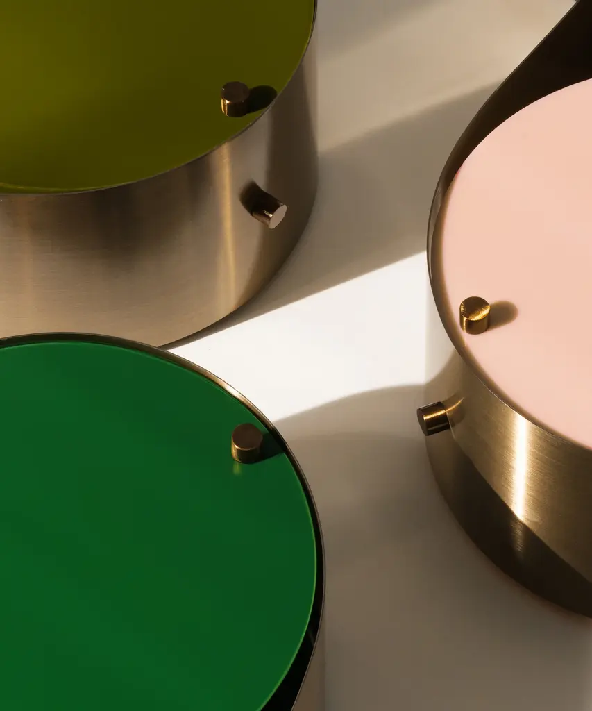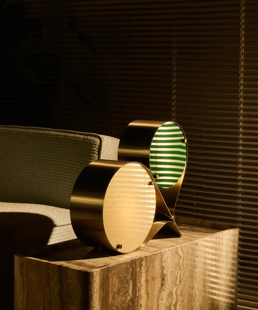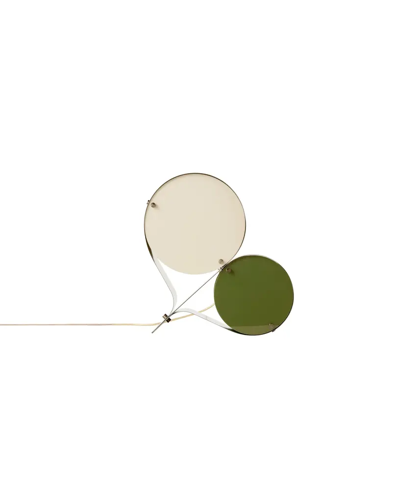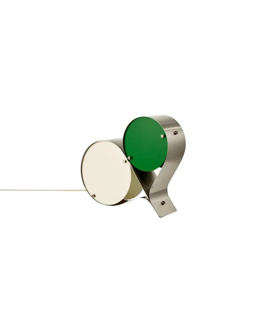 The Coppia Table Lamp is a new sculptural twin-bulb table lamp designed for GUBI by Vibeke Fonnesberg Schmidt. Featuring two discs of Fonnesberg Schmidt’s signature plexiglass housed in a curving metal case, the elegantly industrial design represents both a new material and a new designer for GUBI. The fluid yet geometric design is sturdy enough to be used as either a table or floor lamp, moving easily from desktop to bedside, shelf to windowsill as desired. Coppia is available in tempered, brushed stainless steel, its bronze glow contrasting with a choice of three nature-inspired plexiglass colorways: Ivory/Blush, Ivory/Olive, and Ivory/Clover. Produced by Danish design publisher, Gubi.