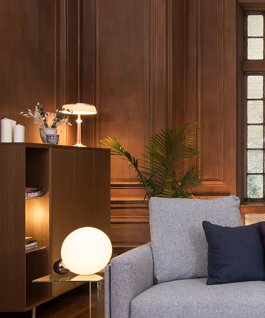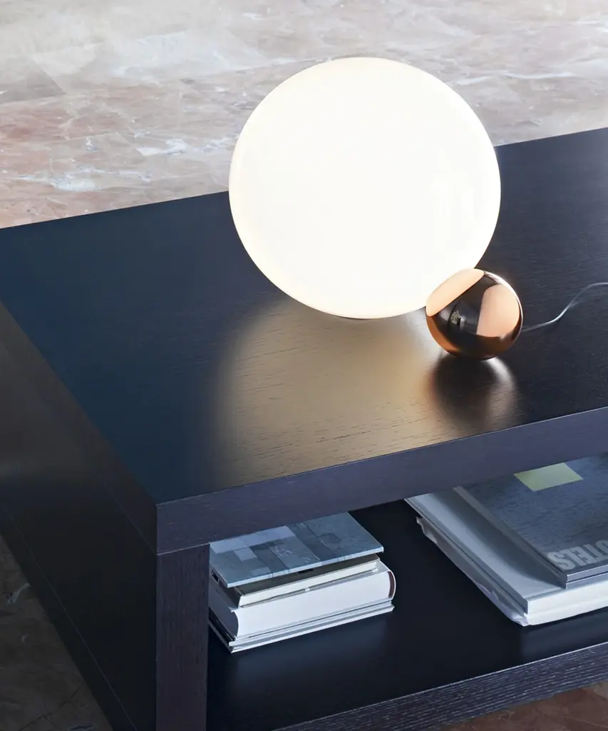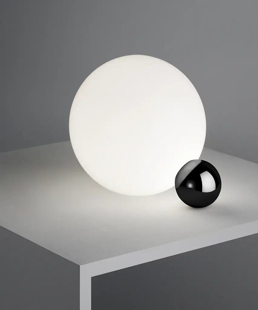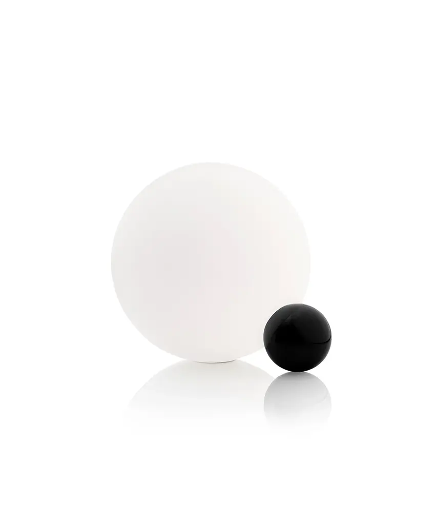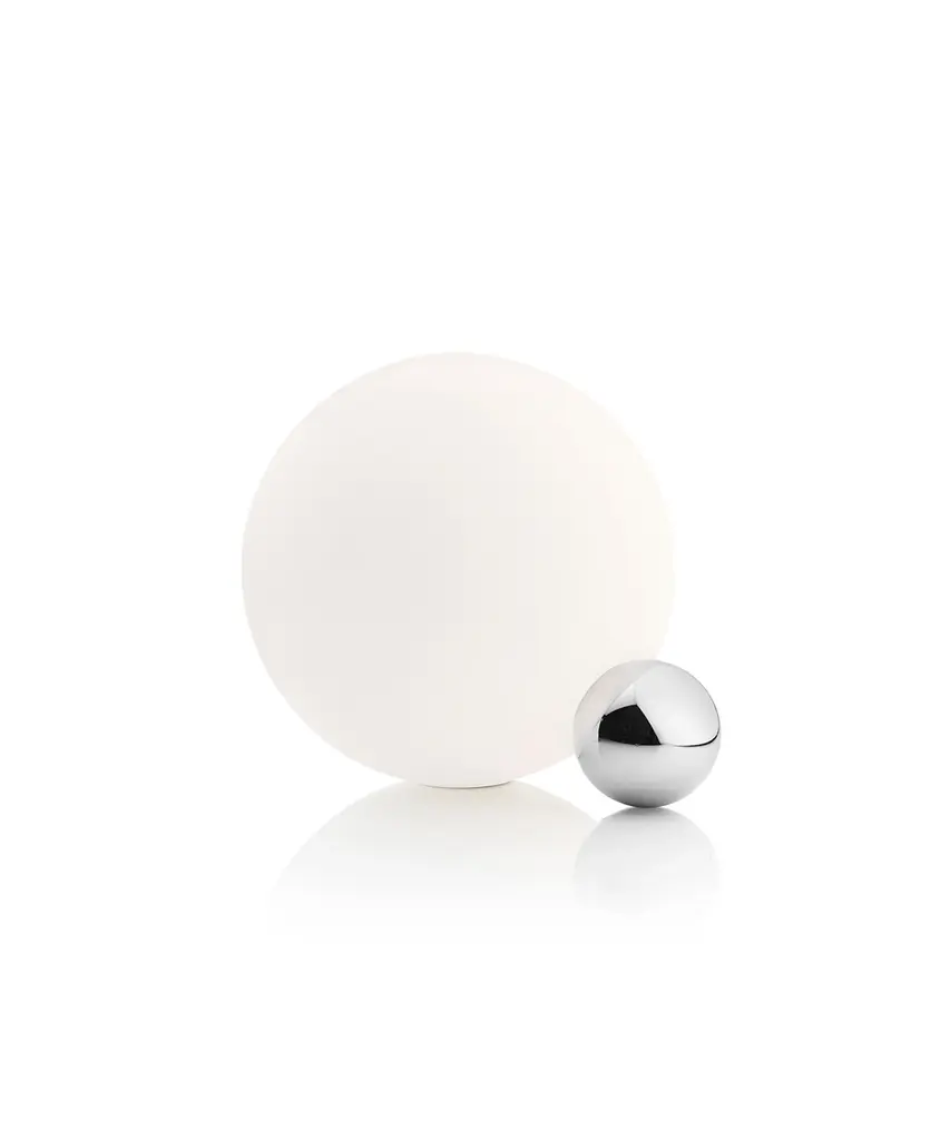 They say that imitation is the sincerest form of flattery, and with the Copycat table lamp designer Michael Anastassiades shows us just how sweet it can be. This fixture is made of two spheres connecting with each other, one small and in a precious material, living in the shadow of the larger sphere. Copycat features an aluminum sphere made from solid metal and a including hand-blown glass opal diffuser. There is an LED light source with dimmer switch on the power cable. The inspiration behind the design: The connection between two beings is powerful, and designer Michael Anastassiades puts it on display in this brilliant design featuring a small and precious sphere aspiring to be something greater. This authentic design is produced in Italy exclusively by Flos.